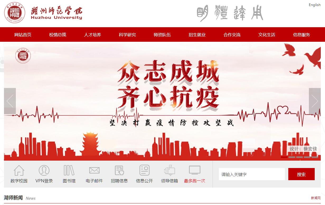 湖州师范学院是一所综合性的全日制普通高等学校。学校办学历史可追溯至1916年的钱塘道第三联合县立师范讲习所,1958年开始高等教育,1994年开始招收本科生。1999年经国家教育部批准,原湖州师范专科学校、湖州师范学校和湖州教师进修学院合并成立湖州师范学院。2000年,原湖州卫生学校并入湖州师范学院。2005年、2017年分别通过教育部本科教学工作水平评估和审核评估。2012年开始独立招收硕士研究生。学校是硕士学位授予单位、全国“文明单位”、全国学雷锋活动示范点,是国家第一批“卓越医生”和“卓越农林人才”教育培养计划项目试点高校、浙江省加强应用型建设试点本科高校。学校位于历史悠久、山水清远、交通便捷的浙江省湖州市。湖州东邻上海、南靠杭州、北接南京,与苏州、无锡隔太湖相望。高铁扩大了湖州“一小时”交通圈(上海、南京、杭州),进一步加快了融入长三角的步伐。文化底蕴深厚,生态环境优美,区位优势明显,素有“丝绸之府、鱼米之乡、文化之邦”的美誉,如今又是“两山”理念的诞生地、中国美丽乡村的发源地、“生态+”的先行地和“中国制造2025”试点示范城市。学校占地1600余亩,校舍总面积58万平方米。有教师教育学院、文学院、理学院、生命科学学院、工学院、医学院等14个二级学院,举办1所独立学院——求真学院,有6所附属医院、4所附属学校。全日制在校学生18000余人(其中硕士研究生近200人、求真学院学生近7100人),成教在册函授学生4700余人。图书馆总建筑面积4.4万平方米,馆藏纸本图书近186万册,国内外纸本期刊1400余种。学校涵盖教育学、工学、农学、医学、理学、文学、经济学、艺术学、法学、管理学、历史学等11大学科门类,正按照做优师范、做大工学、做强农医、做精数理、做特人文、做活经管的建设思路,积极扶植和培育服务区域产业发展的学科专业,构建科学合理的学科专业体系。学校拥有53个本科专业,2个一级学科学术型硕士点和4个专业学位硕士点;1个国家地方联合工程实验室,1个国际联合实验室,7个省重点(工程)实验室、2011协同创新分中心等创新平台,其中省级重大科技创新服务平台1个;2个省科研创新团队(其中1个重点),1个省级院士专家工作站,2个市科研创新团队;8个省级一流学科,10个湖州市重点学科;2个国家特色专业,1个教育部专业综合改革试点项目,10个省级重点专业,5个省级优势专业,11个省级新兴(特色)专业;2门国家级精品课程,2门国家级精品资源共享课程,4门省级精品在线开放课程,26门省级精品课程;1个国家级大学生校外实践教育基地,2个省级大学生校外实践教育基地;7个省级实验教学示范中心,1个省级人才培养模式创新实验区,是浙江省教师教育基地、浙江省农村社区卫生人才培养基地。学校生源充足,毕业生就业质量持续提高。学校现有教职工2500余人(含求真学院、直属附属医院),其中,正高职称201人,副高职称480人,具有博士学位(含在读)375人。有共享院士2人,“长江学者”1人,国家“千人计划”入选者4人,国家“万人计划”入选者1人,国家教学名师1人,省“千人计划”入选者4人,省“万人计划”入选者1人,省有突出贡献中青年专家4人,省高等学校“钱江学者”特聘教授2人,部级岗位科学家2人,省“151”人才工程重点资助人员1人,第一、二层次人选13人,省高校中青年学科带头人32人。获国务院政府特殊津贴9人,全国优秀教师4人,全国百名“两课”优秀教师1人,获全国曾宪梓教育基金奖 9人;省级教学名师4人,省十佳优秀科技工作者1人。拥有第35届南丁格尔奖获得者1人,另有一名校友获第42届南丁格尔奖。学校获国家高等教育教学成果奖3项,省高等教育教学成果一等奖4项、二等奖13项,省高师院校优秀教学成果一等奖 1项;获省自然科学奖一等奖1项、省科学技术进步奖一等奖2项、省哲学社会科学优秀成果一等奖1项,省(部)级科研成果二等奖14项、三等奖19项、进步奖2项。近三年,主持国家自然科学基金项目43项、国家哲学社会科学基金项目12项(其中特别委托项目1项)、省部级项目167项;与省内外400余家企事业单位建立了产学研合作关系。与湖州市政府共建湖州发展研究院、农村发展研究院、马克思主义讲习所等,拥有5个湖州市哲学社会科学研究基地,建有中国生态文明研究院、“两山”理念研究中心等区域特色鲜明的研究机构。学校积极响应国家“一带一路”倡议,在阿塞拜疆国立语言大学设立孔子学院,与中国社会科学院等共建国际跨文化研究中心。积极开展国际合作与交流,先后与20多个国家和港澳台地区的50多所院校和机构开展交流合作,实施中青年教师海外培养计划和国(境)外校际学生交流项目近30个,每年出国(境)学生数达200人以上。目前,学校拥有来自美国、俄罗斯、乌克兰、孟加拉国等40多个国家的570多名长期外国留学生。学校设立“陆增镛教师奖”“陆增祺卓越教学奖”“陆增镛励志奖学金”“众富基金会赵孟頫奖学金”等多个专项基金。学校是教育部中美合作平台“1+2+1培养计划”(学生赴美留学两年,完成规定课程,可同时获中美大学本科毕业证书和学士学位证书)浙江省第三家单位,与美国北科罗拉多大学合作举办学前教育专业本科教育项目。学校努力构建校园文化,打造人文校园、生态校园。根植湖州深厚的历史文化土壤,拥有沈行楹联艺术馆、赵
