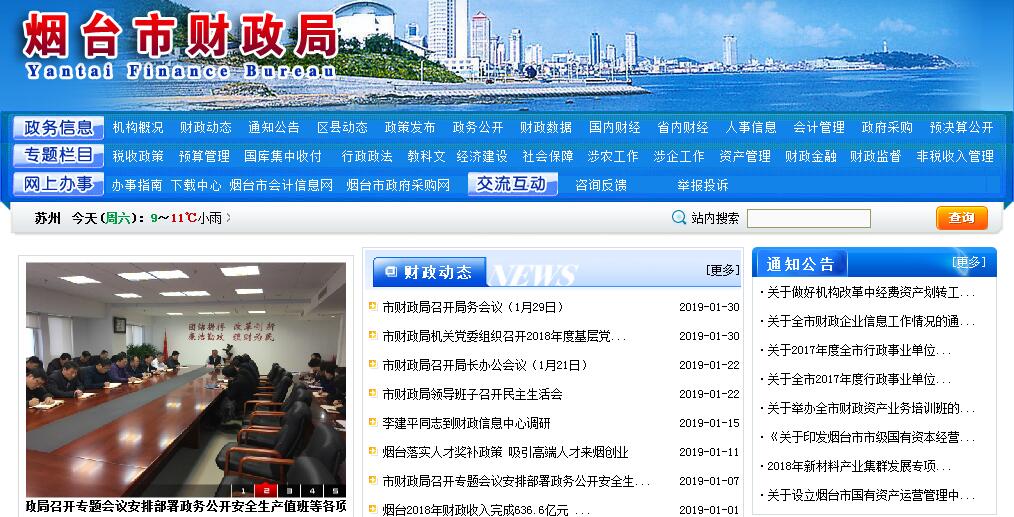 烟台市财政局为烟台市政府工作部门。其主要职责:(一)贯彻执行国家和省财政、税收、相关国有资产管理的方针政策、法律、法规、规章和财务会计规章制度。(二)根据国民经济和社会发展规划,拟订全市财政、税收、相关国有资产管理的中长期规划及改革方案;分析预测宏观经济形势,参与制定各项宏观经济政策;提出运用财税政策实施宏观调控和综合平衡社会财力的建议;完善鼓励公益事业发展的财税政策。(三)承担市级各项财政收支管理的责任。编制年度市级财政预算草案并组织执行,汇总全市财政决算;受市政府委托,向市人民代表大会报告市级和全市预算及其执行情况,向市人大常委会报告财政决算;组织制定经费开支标准、定额,审核批复部门(单位)的年度预决算;完善转移支付制度。(四)负责全市税政管理工作,根据市级预算安排,确定财政收入计划,提出地方性税收政策建议。(五)负责政府非税收入管理,会同有关部门审批或申报行政事业性收费的立项;负责政府性基金、行政事业性收费征收管理;管理市级预算外资金和财政专户;管理财政票据;负责彩票的监督管理工作;拟订市级机关公务员津贴补贴有关政策并组织实施,负责审核县级机关公务员津贴补贴实施方案。(六)按规定组织实施国库管理制度、国库集中收付制度改革工作,指导和监督市级国库业务,按规定开展国库现金管理工作;制定政府采购制度并监督执行。(七)审核和汇总编制全市国有资本经营预决算草案,制定国有资本经营预算的制度和办法;制定并组织实施企业财务管理制度,按规定承担地方金融类企业国有资产管理有关工作,参与拟订企业国有资产管理相关制度,按规定管理资产评估工作。(八)参与拟订市级建设投资的有关政策,制定基本建设财务管理制度并监督执行;负责对政府投资项目的财政性资金进行监督管理和跟踪问效;负责有关政策性补贴和专项储备资金的财政管理工作。(九)会同有关部门管理市级财政社会保障和就业及医疗卫生支出;会同有关部门拟订社会保障资金(基金)的财务管理制度;编制市级社会保障预决算草案;组织实施对社会保障资金使用的财政监管。(十)贯彻执行政府国内外债务管理的方针政策,拟订有关规章制度和管理办法;承担外国政府和国际金融组织贷款的管理工作。(十一)制定全市行政事业单位国有资产管理规章制度,按规定负责国有资产管理工作;制定需要全市统一规定的开支标准和支出政策并组织实施。(十二)拟订财政资金预算绩效管理有关制度办法和政策措施,建立全过程预算绩效管理机制和评价体系。(十三)拟订政府购买服务政策及相关绩效评价制度,研究制定相关标准体系和基本流程,审核政府购买服务预算及计划。(十四)管理全市的会计工作,监督和规范会计行为,拟订财务制度、会计制度并监督执行;负责有关经济鉴证类社会中介机构及其执业人员的资质管理,指导和监督其业务活动;承担会计专业技术资格管理有关工作。(十五)监督检查财税法规、政策的执行情况,检查反映财政收支管理中的重大问题,提出加强财政管理的政策建议;组织协调财税、审计监督检查工作。(十六)组织制定我市投融资政策并组织实施;汇总编制年度政府投融资计划;负责对市级政府投融资平台及其资金使用情况进行监督管理,会同有关部门对投融资效果进行绩效评价等工作。(十七)指导和推动全市农村综合改革。(十八)负责全市农业综合开发管理工作。(十九)承办市委、市政府交办的其他事项。