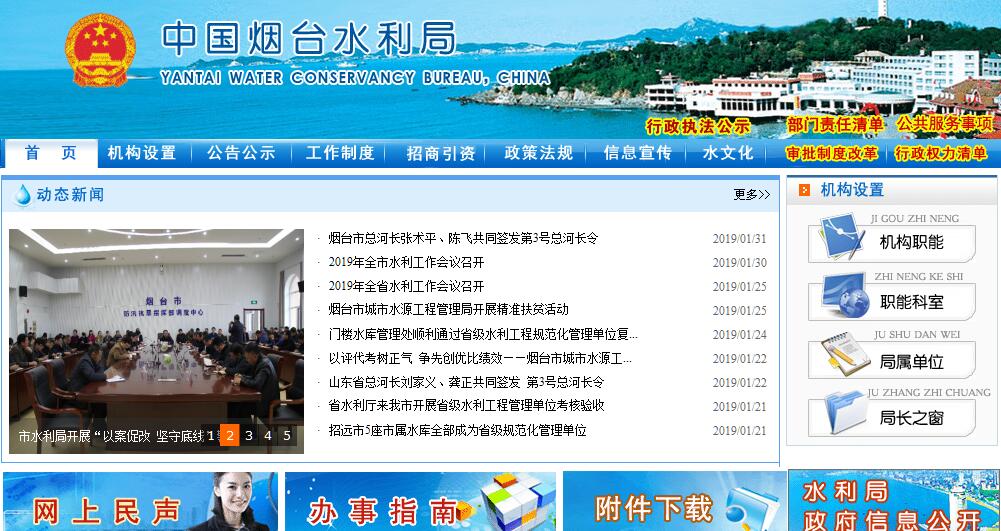 根据中共山东省委、山东省人民政府批准的《烟台市人民政府职能转变和机构改革方案》(鲁厅字〔2014〕41 号)和《中共烟台市委烟台市人民政府关于烟台市人民政府职能转变和机构改革的实施意见》(烟发〔2014〕11号),设立烟台市水利局,为市政府工作部门。 其主要职责:(一)指导水资源的合理开发利用,拟订全市水利发展战略和中长期规划、年度计划,组织起草全市水利工作的政策和规范性文件,并监督实施;提出水利固定资产投资规模和方向、财政性资金安排建议;负责市级水利资金和水利国有资产监督管理工作。(二)组织指导生活、生产经营和生态环境用水的统筹兼顾与保障工作。组织制订水中长期供求规划、水量分配方案,指导水能资源调查、调水工程的水资源调度,组织实施防洪论证制度;指导水利行业供水和农村水能资源开发、小水电等工作。(三)承担水资源保护和节约用水职责。组织编制水资源保护规划,拟订重要河流的水功能区划并监督实施,核定水域纳污能力,提出限制排污总量意见,指导饮用水水源保护、地下水开发利用和保护工作,拟订节约用水政策,指导和推进节水型社会建设。(四)组织实施水资源管理与水土保持法律法规的贯彻实施;组织实施取水许可、水资源有偿使用、水资源论证、水功能区限制纳污制度;组织实施水资源调查评价和监测工作;组织拟订全市用水总量、用水效率、水功能区限制纳污等控制指标,并监督实施;负责水土保持工作,组织实施水土流失的综合防治和监测预报;指导“四荒”治理开发的水土保持工作。(五)组织、协调、监督、指挥全市防汛抗旱工作;对重要河流、水库和重要水利工程实施防汛抗旱调度、应急水量调度,负责防汛抗旱应急预案的编制并组织实施;负责对土地利用总体规划、城市规划和其他涉及防洪的规划、重大建设项目布局的防洪论证提出意见;指导全市防汛抗旱物资储备与管理、防汛抗旱队伍建设与管理;负责水利突发公共事件的应急管理工作;承担市政府防汛抗旱指挥部的日常工作。(六)指导水利工程建设与管理工作。指导水利设施、水域、河道及其岸线的管理与保护;组织指导重要河流、水库及河口滩涂、河堤的治理和开发;组织实施具有控制性或跨县市区、跨流域的重要水利工程建设与运行管理;组织实施水利工程建设有关制度;指导水利建设市场的监督管理;按规定权限审查河道管理范围内建设项目、工程建设方案;指导防潮堤建设与管理;组织指导水库大坝的安全监管;负责水利移民工作的监督管理。(七)指导农村水利工作。组织协调农田水利基本建设;指导农田灌溉排水、村镇供水工作;组织实施农村饮水安全、节水灌溉等工程的建设与管理;指导农村水利社会化服务体系建设。(八)指导水政监察和水行政执法工作。负责重大涉水违法事件及市直管水利工程管理范围内水事违法案件的查处;调处县市区间的水事纠纷;指导监督全市水利行政事业性收费征收管理工作;按规定组织实施市本级水利行政事业性收费征收管理工作。(九)负责重点水利工程安全生产监督管理工作;指导水利行业安全生产工作;组织实施水利工程质量和安全监督。(十)组织水利科学技术研究与推广工作;负责行业技术标准和规程规范的监督实施;组织开展水利系统对外交流、利用外资、引进国(境)外智力等工作;指导水利宣传、信息化、人才队伍建设等工作。(十一)承办市委、市政府交办的其他事项。