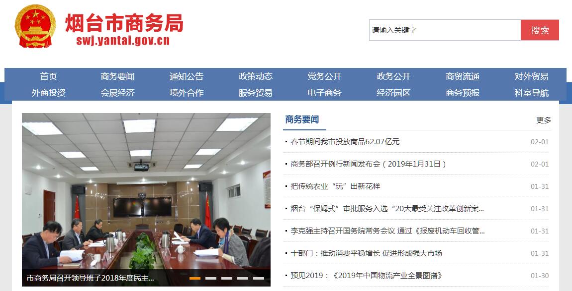 烟台市商务局主要职责:(一)拟订全市商务发展战略、规划、政策、规范性文件和管理办法,并组织实施。(二)推进流通产业结构调整,指导流通企业改革和社区商业发展;负责商贸服务业管理工作,联系指导商贸流通行业安全生产工作,提出促进商贸中小企业发展的政策建议;拟订再生资源回收行业发展规划、政策并组织实施;推动流通标准化和连锁经营、商业特许经营、物流配送等现代流通方式的发展。(三)研究提出引导国内外资金投向市场体系建设的政策建议,促进城乡市场发展;会同有关部门拟订大宗产品批发市场和城市商业网点规划、政策并组织实施,指导商业体系建设工作;推进农村市场体系建设,组织实施农村现代流通网络工程。(四)承担牵头协调整顿和规范市场经济秩序工作的责任。拟订规范市场运行、流通秩序的政策;推动商务领域信用建设,指导商业信用销售;按规定对拍卖、典当、租赁、汽车流通、旧货流通、报废汽车回收(含拆解)等特殊流通行业进行监督管理。(五)建立健全生活必需品市场供应应急管理机制;监测分析市场运行、商品供求状况,调查分析商品价格信息,进行预测预警和信息引导;按规定负责重要消费品储备管理、市场调控、重要生产资料流通管理工作。(六)组织实施市区“菜篮子”工程,搞好肉、蛋、菜、奶生产基地建设和市场规划、建设工作,会同或配合有关部门协调管理有关基金的使用。(七)贯彻执行上级有关会展业发展和管理的有关政策、法规,研究拟订全市会展业发展的政策、规划,并组织实施和督促考核;会同有关部门对全市会展业实施行业管理。(八)拟订全市电子商务发展的相关政策、规划、措施并组织实施,建立电子商务统计和评价体系;推进企业间电子商务交易、网络零售、电子商务服务业等业态发展;牵头推进各行业电子商务应用,牵头做好电子商务市场监管工作。(九)指导贸易促进活动和外贸促进体系建设;拟订促进外贸发展方式转变的政策并组织实施;按规定负责审核和监督管理重要工业品、原材料和重要农产品(粮食、棉花除外)进出口计划及配额;指导管理加工贸易。(十)拟订机电产品进出口发展规划、政策并组织实施;依据国家、省、市产业政策调整机电产品进出口结构;负责机电产品进出口申报、审核和管理工作,指导协调大型成套设备出口,组织企业开拓机电产品国际市场;监督、协调全市机电产品国际招投标工作。(十一)拟订技术贸易发展规划、政策并组织实施;组织实施“科技兴贸”、出口品牌发展战略相关工作,承担高新技术产品贸易促进工作;按规定负责两用物项、易制毒化学品进出口管理及出口管制和最终用户管理工作;推进进出口贸易标准化工作。(十二)牵头拟订服务贸易发展规划并开展相关工作;会同有关部门制定促进服务出口和服务外包发展的规划、政策并组织实施;推动服务贸易平台建设。(十三)承担世界贸易组织相关规则、协议的咨询服务工作;组织协调涉及我市的反倾销、反补贴、保障措施及其他相关工作;指导、协调企业对进口产品发起的反倾销、反补贴和保障措施调查;建立市内进出口公平贸易预警机制;协助国家、省商务部门组织开展对外贸易壁垒调查和产业损害调查;指导、协调产业安全应对工作;按规定承担对经营者集中行为进行反垄断调查的相关工作。(十四)指导、管理、协调全市外商投资工作;按权限核准、审核和备案外商投资企业的设立及变更事项;依法监督检查外商投资企业执行有关法律法规规章、合同章程的情况并协调解决有关问题。 (十五)拟订全市吸引外商投资发展规划和政策;指导全市产业招商和县市区投资促进工作;组织实施全市重大外商投资促进活动和专题招商引资活动;协调推进重大在谈项目。(十六)指导、管理、协调全市境外投资工作。拟订全市境外投资发展规划、政策、办法并组织实施;监督和管理市内企业对外投资开办企业(金融企业除外)。(十七)负责对外经济合作和对外援助工作;管理、监督对外承包工程、对外劳务合作等对外经济合作业务;审核对外劳务合作经营资格;按规定负责外派劳务和境外就业人员的权益保护工作;管理多双边及国外民间组织对我市提供的无偿援助和赠款项目(不含财政合作项下外国政府及国际金融组织对我市赠款)。(十八)会同有关部门研究拟订全市经济开发区、保税港区、保税区、出口加工区、保税物流中心等的发展规划、政策;负责国家级、省级经济开发区设立的审核上报工作;负责经济开发区的综合评价、统计、考核工作。(十九)研究提出和协调解决中韩(烟台)产业园建设发展的有关重大问题;组织编制和推动落实中韩(烟台)产业园建设规划、产业发展规划;组织对上争取并协调落实中韩(烟台)产业园建设发展的相关政策措施;承担烟台中韩产业园筹建工作领导小组的日常工作。(二十)发展我市与有关经济组织、国外地方政府、友好城市间的经贸关系,建立联系机制并组织开展相关工作;指导与未建交国家的经贸活动;分析、研究亚洲、欧美国家和地区经贸发展动态;推进与香港、澳门特别行政区和台湾地区的经贸合作,组织实施我市对台直接通商工作。审批、管理外国及香港、澳门特别行政区和台湾地区非企业经济组织驻我市代表机构。(二十一)指导和协调全市外商投资企业党建工作,管理市