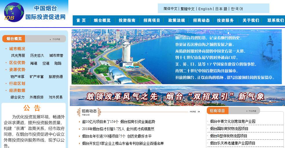 烟台市投资促进局(IDB)是烟台市人民政府批准成立的,市政府直属正处级全额拨款事业单位。其主要职责:•承担全市招商引资、投资促进日常工作,拟订全市招商引资、投资促进发展战略、中长期规划和政策措施;研究境内外投资促进政策和发展趋势,向市委、市政府提出对策建议;•负责拟定全市年度招商引资、投资促进活动计划,并牵头组织实施;•负责与境内外政府机构、商协组织、世界500 强、中国500 强、民企500 强、行业领军企业、隐形冠军企业、科研机构、高校院所等联系沟通,推动招商引资合作,构建全球投资促进网络;•负责全市招商引资信息化建设,建立全市投资促进信息化平台,完善全市投资信息、在谈在建项目、对外合作载体、产业专家智库;负责全市投资环境、投资政策宣传推介工作;•负责指导县市区、园区和市直部门招商引资工作,推进招商引资工作体制机制、方式方法创新;•负责全市重点招商引资项目洽谈、协调、调度、督导,承担签约项目跟踪、推进、服务工作;•负责编印、下达全市年度招商引资考核任务,制定全市招商引资考核办法并组织实施;•负责外商投资企业的联络服务工作,受理并协调外商投诉处理工作,协调解决外商投资企业有关问题。承担外商投资有关数据的统计、分析工作;•负责拟订全市招商引资队伍建设规划和教育培训计划并组织实施;•负责境内外商务代表处的日常管理、联系工作;•承办市委、市政府交办的其他事项。