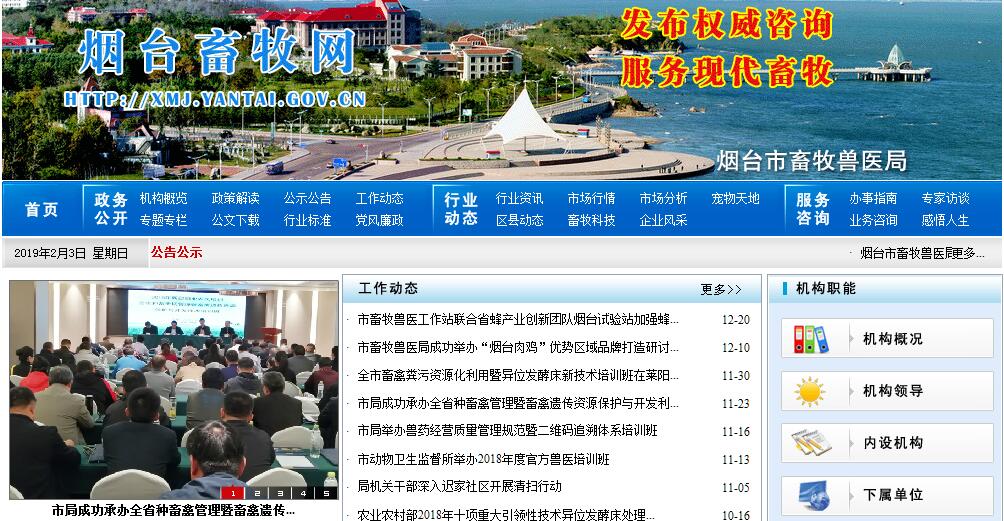 根据中共山东省委、山东省人民政府批准的《烟台市人民政府职能转变和机构改革方案》(鲁厅字〔2014〕41 号)和《中共烟台市委烟台市人民政府关于烟台市人民政府职能转变和机构改革的实施意见》(烟发〔2014〕11 号),设立烟台市畜牧兽医局,为市农业局直属机构。其主要职责:(一)贯彻执行国家、省有关畜牧业的方针政策和法律法规,研究拟订全市畜牧业的政策、规范性文件。(二)研究拟订全市畜牧业发展规划并组织实施;指导、监督全市畜牧业行政执法工作;负责畜牧业对外经济技术交流与合作。(三)负责全市畜牧业生产监督管理工作。指导畜牧业结构调整、标准化生产和产业化建设;负责畜禽良种的资源保护开发、繁育推广、生产经营管理工作;指导、扶持涉牧农村合作经济组织的建设与发展。(四)拟订全市畜牧业科技、教育培训、技术推广规划并组织实施;组织实施全市畜牧业重大科研项目攻关;指导全市畜牧兽医队伍建设。(五)负责全市动物防疫工作;负责全市突发重大动物疫情应急管理工作;负责兽医医政工作。(六)负责全市兽药、兽医器械的监督管理,组织实施全市兽药、兽药残留限量和残留检测方法国家标准。(七)承担全市饲料、饲料添加剂监督管理责任。(八)承担全市畜产品质量安全监督管理责任;负责生鲜乳生产环节、收购环节的监督管理工作。(九)拟订全市畜禽屠宰管理政策并组织实施;负责全市畜禽屠宰监督管理工作。(十)承办市委、市政府和市农业局交办的其他事项。
