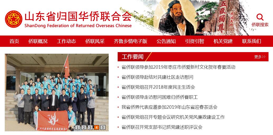 山东是长江以北的重点侨乡省份,山东籍海外华侨华人、港澳同胞120多万,其中港澳同胞约15万,改革开放后出去的新华侨华人约15万;省内归侨侨眷120多万。山东籍境外乡亲遍布世界97个国家和地区,以美国、韩国、日本、俄罗斯、巴西、加拿大居多。山东的侨乡主要分布在东部沿海城市,归侨侨眷多分布于烟台、潍坊、威海、日照、临沂、青岛、济南等市。历史上山东籍华侨华人以经营餐馆、开中医诊所、开杂货铺和做小型贸易为主。山东籍新华侨华人综合素质高、从业领域广泛,有一定经济实力。山东籍侨胞在海外近20个国家成立了约200多个同乡社团组织,涌现出了一批有影响的社团。侨联是党领导下的由归侨侨眷组成的人民团体,是党和政府联系广大归侨侨眷、海外侨胞的桥梁和纽带,是政协的组成单位。担负着服务经济发展、依法维护侨益、拓展海外联谊、积极参政议政、弘扬中华文化、参与社会建设等职能。山东省归国华侨联合会(简称“山东省侨联”)成立于1962年7月,机关内设办公室(同时挂组织人事部牌子)、文化交流部(同时挂《齐鲁乡情》编辑部牌子)、经济联络部3个部室和机关党委,有行政编制15名。办公室(组织人事部)主要负责机关内部管理、综合协调及全省侨联组织建设工作,文化交流部(《齐鲁乡情》编辑部)主要负责海内外文化交流、侨联宣传工作、侨界公益事业和维护侨益工作,经济联络部主要负责为经济建设服务及开展海外联谊工作,机关党委主要负责机关和直属单位党的建设和群团工作、学习教育。