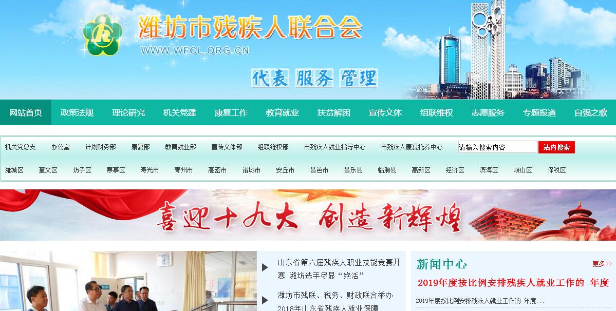 潍坊市残联是中国残疾人联合会的地方组织,是将残疾人自身代表组织、社会福利团体和事业管理机构融为一体的残疾人事业团体,具有“代表、服务、管理”职能:代表残疾人共同利益,维护残疾人合法权益;开展各项业务和活动,直接为残疾人服务,承担政府委托的部分行政职能,发展和管理残疾人事业。市残联由市政府领导同志联系,在市计划中单列户头,与各县市区建立业务关系。其机关的主要职责是:(一) 听取残疾人意见,反映残疾人需求,维护残疾人权益,为残疾人服务。(二) 团结、教育残疾人遵守法律,履行应尽的义务,发扬乐观进取精神,自尊、自信、自强、自立,为社会主义建设贡献力量。(三) 弘扬人道主义,宣传残疾人事业,沟通政府、社会和残疾人之间的联系,动员社会理解、尊重、关心、帮助残疾人。(四) 开展残疾人康复、教育、劳动就业、扶贫、文化、体育、科研、用品供应、福利、社会服务、无障碍设施和残疾预防等工作,创造良好的环境和条件,扶助残疾人平等参与社会生活。(五) 协助市政府研究、制定和实施残疾人事业的政策、规定、规划和计划,对有关业务领域进行指导和管理。(六) 承担市政府残疾人工作协调委员会的日常工作,做好综合、组织、协调和服务。(七) 负责对各类残疾人社团组织进行监督管理。(八) 组织开展残疾人事业的募捐活动。(九) 开展残疾人事业的对外交流与合作。(十) 承担市委、市政府和省残联交办的其他事项。