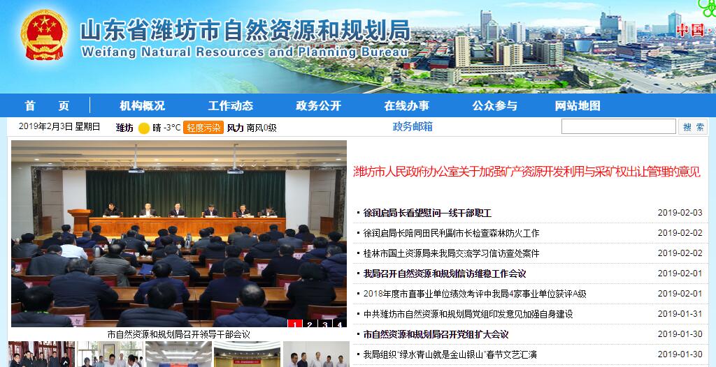 潍坊市自然资源和规划局主要职责:(一)贯彻执行国家和省有关土地、矿产资源和勘察测绘工作的政策、法律、法规、规章;拟定我市有关国土资源管理和勘察测绘管理的规范性文件,并组织实施;制定我市管理、保护与合理利用国土资源及勘察测绘管理的技术标准、规程、规范和办法,并组织实施。(二)组织编制和实施全市国土规划、土地利用总体规划和基本农田保护规划、土地利用年度计划和其他专项规划;参与报国务院、省政府、市政府审批的城市总体规划审核;指导、审核县(市)、乡(镇)土地利用总体规划;组织矿产资源调查评价,编制矿产资源保护与合理利用规划、地质勘查规划、地质灾害防治和地质遗迹保护规划。(三)监督检查县(市)土地、矿产资源和测绘规划执行情况;依法保护土地、矿产资源所有者和使用者的合法权益;承办并组织调处重大权属纠纷,直接查处县市人民政府及其国土资源主管部门违反国土资源管理法律法规的行为;负责有关行政复议。(四)拟定并组织实施耕地特殊保护和鼓励耕地开发政策;实施农地用途管制,组织实施基本农田保护,指导未利用土地开发、土地整理、土地复垦和开发耕地的监督工作;组织实施占用耕地补偿制度。(五)贯彻实施国家和省地籍管理办法;组织全市土地资源调查、地籍调查、土地统计和动态检测;指导土地确权、城乡地籍、土地定级和登记等工作。(六)拟定全市有关土地市场、土地资源管理办法、措施,并组织实施;按规定审核国有土地使用权处置方案;制定乡(镇)村用地管理办法;指导农村集体非农土地使用权的流转管理。(七)指导全市基准地价、标定地价的评测,审查评估机构从事土地评估资格,确认土地使用权价格;承担报国务院、省政府、市政府审批的各类用地的审查、报批工作。(八)依法管理矿产资源探矿权、采矿权的审批、申报登记发证和转让审查、审批、申报登记;承办对外合作区块的依法审核、报批事宜;承担矿产资源储量管理工作,管理地质资料汇交;依法实施地质勘查行业管理,审查地质勘查单位资格,管理地质勘查成果;审查监督评估机构从事探矿权、采矿权评估资格,确认探矿权、采矿权评估结果。(九)组织检测、防治地质灾害和保护地质遗迹;依法管理水文地质、工程地质、环境地质勘查和评价工作,检测、监督防止地下水的过量开采与污染,保护地质环境;负责大中型建设项目地质环境可行性论证报告的审查;承办具有重要价值的古生物化石产地、标准地质剖面等地质遗迹保护区认定申报事宜;依法参与开办矿山的立项审核,对矿产资源的开发、利用和保护进行监督管理。(十)组织并管理全市基础测绘、市界测绘、市内行政区域界线测绘、地籍测绘和其他全市性或重大测绘项目;负责全市测绘单位资格审查、测绘任务登记和地图编制出版工作;依法审查向社会出版、展示的地图,管理并审核地名在地图上的表示;管理测绘基准和测量控制系统;管理全市基础地理信息数据,组织指导基础地理信息社会化服务;依法办理对外提供测绘成果和外国组织个人来潍测绘;根据授权发布我市重要地理信息数据;负责全市测量标志保护工作。(十一)监督管理国家和省、市财政拨给的地勘费、测绘事业费及其他专项资金;按规定做好矿产资源、土地税费征收和使用的有关工作。(十二)开展国土资源管理宣传教育,指导全市国土资源系统业务培训;推进科学技术进步,推广科技新成果;组织开展国土资源、测绘行业的对外合作与交流。(十三)领导、管理市辖4区各派出分局;管理市属各开发区分局的业务工作;以市国土资源局为主,管理各县市国土资源局和市属各开发区分局领导班子成员及相应职级的干部。(十四)承办市委、市政府交办的其他事项。
