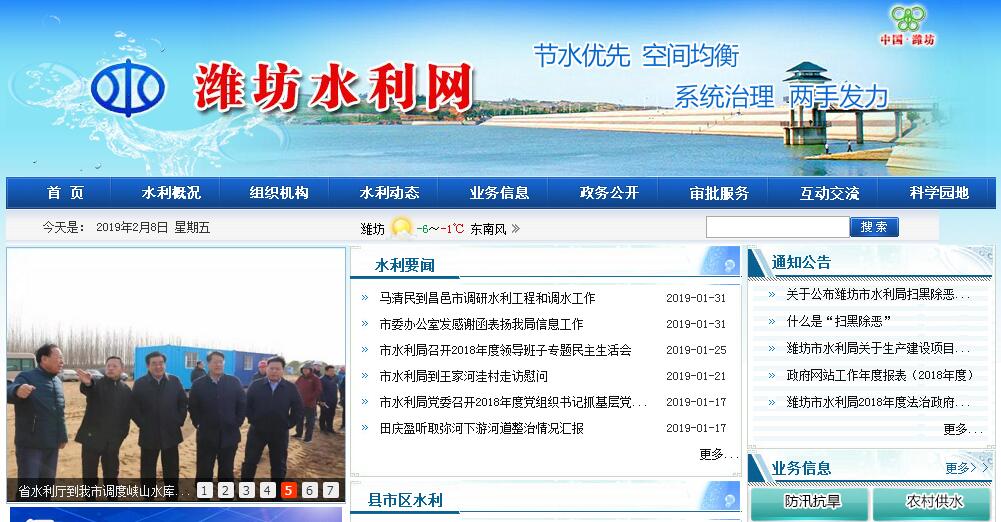 潍坊市水利局主要职责:(一)贯彻执行水利工作法律、法规和方针、政策,负责水法治建设;起草有关地方性法规、规章草案,拟订全市水利政策;负责提出有关水利价格、收费、信贷、税收的政策建议;负责水行政执法监督工作;指导水政监察和水行政执法工作;组织查处重大涉水违法事件;负责调处县市区间的水事纠纷;指导水利行业行政事业性收费征收管理工作。(二)负责保障水资源的合理开发利用;负责组织实施水利改革发展相关工作,参与对水利改革发展成效考核;拟订全市水利发展中长期规划,组织编制水利综合规划和专业规划;负责提出水利固定资产投资规模和方向、财政性资金安排建议,提出水利建设投资安排建议;负责市级水利资金和水利国有资产监督管理工作。(三)负责实施水资源的统一管理和监督;负责生活、生产经营和生态环境用水的统筹兼顾和保障;拟订全市水中长期供求规划、水量分配方案并监督实施;负责水资源的统一规划和配置,以及重要流域、区域和重点调水工程的水资源调度;负责用水总量控制的监督和管理工作;组织实施水资源论证、取水许可、水资源有偿使用等制度;指导中水等非常规水资源和雨洪资源开发利用等工作;指导水利行业供水和农村水能资源开发、小水电等工作。(四)承担水资源保护和节约用水的责任;负责组织编制全市水资源保护规划和节水规划;组织拟订重要河流、水库的水功能区划并监督实施;负责核定水域纳污能力,提出限制排污总量意见,指导入河排污口设置工作;指导饮用水水源保护、地下水开发利用和管理保护工作;负责节约用水的统一管理和监督工作,拟订节约用水政策,指导和推动节水型社会建设。(五)负责对土地利用总体规划、城市规划和其他涉及防洪的规划、重大建设项目布局的防洪论证提出意见;组织、协调、监督、指挥全市防汛抗旱工作,负责重要洪泛区、蓄滞洪区和防洪保护区的洪水影响评价工作,承担市政府防汛抗旱总指挥部的日常工作;指导水利突发公共事件的应急管理工作。(六)负责指导水利工程建设与管理工作;负责组织实施水利工程建设与管理有关制度;指导水利建设市场的监督管理;指导水利设施、水域及其岸线的管理与保护,负责组织实施具有控制性的或跨县市区、跨流域的重要水利工程建设与运行管理;指导河流、湖泊及河口、海岸滩涂的治理和开发;按规定权限审查河道管理范围内建设项目、工程建设方案;指导防潮堤建设与管理。(七)负责指导农村水利工作;负责农田水利的管理和监督工作,编制农田水利规划,组织协调农田水利基本建设;指导农田灌溉排水、村镇供水工作;组织实施农村饮水安全、节水灌溉等工程建设与管理;负责全市农村公共供水管理工作;指导农村水利社会化服务体系建设。(八)负责水土保持和水生态建设工作;组织编制水土保持和水生态建设规划并监督实施;负责组织实施水土流失的综合防治工作;负责开发建设项目水土保持方案的审批、监督实施和水土保持设施的验收工作;负责归口管理荒山、荒丘、荒滩、荒沟的治理开发工作。(九)负责重点水利工程安全生产监督管理工作;负责指导水利行业安全生产工作;组织实施水利工程质量和安全监督。(十)负责全市水利科技创新工作;负责组织重大水利科学研究、技术推广和创新服务工作;指导水利系统对外交流合作、利用外资、引进国(境)外智力等工作;指导水利宣传、信息化、人才队伍建设等工作;负责行业技术标准和规程规范的监督实施。(十一)负责全市水利水电工程移民工作;承担市水利水电工程移民工作领导小组的日常工作。(十二)负责局机关及所属单位的安全生产监管和维护稳定工作。(十三)承办市委、市政府交办的其他事项。