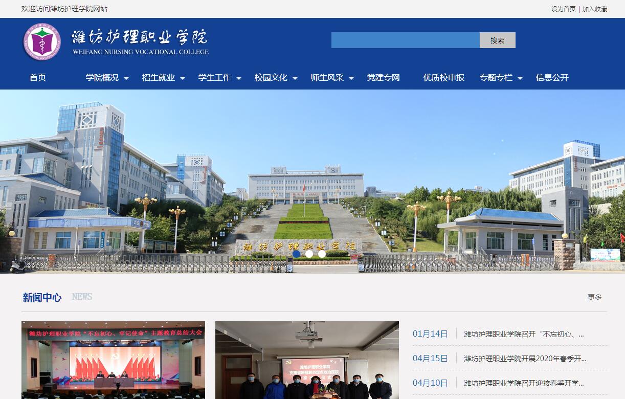 潍坊护理职业学院是经山东省政府批准设立的全日制普通高等学校,由山东省益都卫生学校和潍坊卫生学校合并组建而成。学院现有三个校区,学院新校区作为主校区坐落在青州市云驼风景区内,校园总占地780亩,建筑面积21.3万平方米;建有附属医院3所,养老护理院1所,省级以上财政支持的实训基地2个,建有高标准实验室139个,教学仪器设备总值9600多万元。现有专兼职教师近800人,专任教师80%以上具有中高级技术职称。学院还聘请了包括中国工程院副院长樊代明院士在内的100多名知名专家担任兼职教授。学院全日制在校生13000多人,生源遍布全国各地。学院具有悠久的办学历史,青州校区的前身是英国浸礼会创建于1885年的青州医学堂。齐鲁大学医科在此基础上诞生,是山东近代医学教育的源头,山东护理教育的发端。潍坊校区的前身是1889年美国基督教北长老会在潍县创办的乐道院医护学校。两所卫校都有120多年的办学历史,合并前都是国家级重点学校、卫生部职业技能鉴定培训基地、省级教学示范学校和省级文明单位,已为社会培养各类卫生技术人才10万多名。学院专业设置集大专、中专、成教、培训于一体,开设护理、口腔医学技术、康复治疗技术、药学、助产、医学检验技术、医学营养、医用电子仪器与维护、中药、医学影像技术、医疗美容技术、老年服务与管理、卫生检验与检疫技术等13个专业,根据社会需求开展成人教育和社会培训。护理专业是学院的品牌专业,是山东省和潍坊市的特色专业,已有100多年的办学历史。军事化管理是学院首创和名牌方向,主要面向部队医院实习就业,被山东省卫计委确定为全省卫生系统服务品牌。口腔医学技术专业、老年服务与管理专业是学院的重点专业,依托专业建有潍坊牙科医院、潍坊口腔医院、潍坊滨海常青园养老护理院等机构。药学专业是学院特色专业、山东省重点专业,实行订单式培养,毕业生供不应求。康复治疗技术专业是学院特色专业,在当地具有较高的社会声誉。学院人才培养坚持校企合作、工学结合,实行订单式培养。在护理、口腔工艺技术、药剂、医学检验技术等专业开设企业冠名班,实行校企双重评价体系。开展“双证”、“多证”培养,搭建行业需求人才的桥梁,学生在校期间除获得毕业证书,还要获得职业资格证书,还可以取得育婴师、中医按摩师、营养师等证书。加强实验实训基地建设,学院成立后投入6000多万元建设高标准实验实训基地,与校外68家二级以上综合性医院合作建成实习教学医院,开展实习实践教学,学生的专业技能和操作水平不断提高,在全国全省各级技能大赛中,屡创佳绩,多次获得团体或个人一等奖和第一名。学院实行“实习就业一体化”,与全国30多家知名医院保持密切合作关系,每年有600余人被学院推荐到解放军总医院、北京协和医院、空军总医院、海军总医院、北京军区总医院、南京军区总医院等知名医疗单位顶岗实习,留用率超过70%。与北京朗依制药、潍坊制药厂、广东定远陶齿、青岛华新华义齿加工厂、潍坊金通医药等20多家医药、义齿企业签有订单培养协议。积极探索国外就业,与美国、英国、韩国等多家教育机构开展合作,成立了外派劳务培训中心、雅思培训中心,开展出国护士培训,300多名毕业生走出国门就业。学院成立以来,确立了“建设省内一流、国内知名高职学院”的办学目标,坚持以教学为中心,以学生全面发展为主线,加强内涵建设,改善育人环境,人才培养水平得到全面提升,先后获得省级文明单位、全省高校后勤服务工作先进单位、全省高校公寓管理优秀单位等10多项荣誉称号,是卫生部职业技能鉴定培训基地,国家、省、市三级养老护理员培训基地。近阶段,学院将进一步夯实发展基础,发挥特色优势,提升内涵质量,努力建成质量优良、特色鲜明、省内一流、全国知名的高职学院。