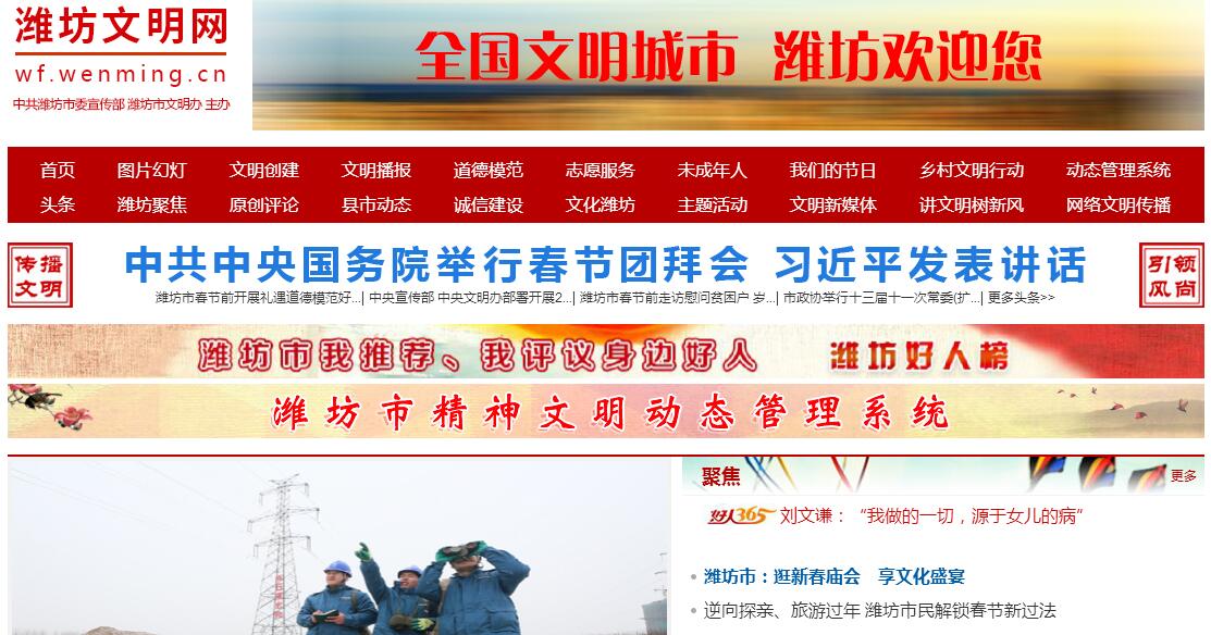 | 网站简介: 潍坊精神文明网网站(简称“潍坊文明网”)由潍坊市委宣传部、潍坊文明办主办, 是潍坊宣传思想战线和精神文明建设系统的门户网站,宗旨是传播文明、引领风尚。 |