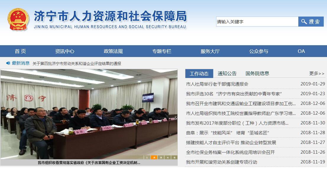 济宁市人力资源和社会保障局主要职责:(一)贯彻执行国家、省有关人力资源和社会保障工作的方针政策、法律法规,拟订全市人力资源和社会保障事业发展规划和政策,并组织实施和监督检查。(二)拟订人力资源流动政策,建立统一规范的人力资源市场,促进人力资源合理流动和有效配置。(三)负责促进就业工作。拟订统筹城乡就业发展规划和政策,健全公共就业服务体系;建立完善职业资格制度、就业援助制度和城乡劳动者职业培训制度;拟订全市技工学校及职业培训机构发展政策;牵头拟订高校毕业生就业政策;会同有关部门拟订高技能人才、农村实用人才培养和激励政策。(四)统筹建立覆盖城乡的社会保障体系。拟订城乡社会保险及补充保险政策和标准并组织实施;拟订机关企事业单位基本养老保险政策并逐步提高基金统筹层次;规范完善社会保险市级统筹办法;组织拟订全市统一的社会保险关系转续办法;会同有关部门拟订社会保险及其补充保险基金管理和监督检查制度;编报社会保险基金预决算建议草案;参与拟订社会保险基金投资政策。(五)负责就业、失业、社会保险基金预测预警和信息引导;拟订应对预案,实施预防、调节和控制,保持就业形势稳定和社会保险基金总体收支平衡。(六)负责行政机关公务员综合管理,会同有关部门拟订全市公务员分类、录用、登记、考核、奖惩、任用、培训、调任、转任、辞职、辞退等方面的政策、并组织实施;组织实施事业单位工作人员参照公务员法管理和聘任制公务员管理工作;组织实施公务员申诉控告制度;会同有关部门组织落实国家荣誉制度,拟订政府奖励制度并组织实施;依法办理市政府提请市人大常委会决定任免工作人员和市政府任免工作人员的有关事项;拟订有关人员调配政策和援建地区、重点建设项目人员安置政策。(七)会同有关部门拟订全市机关事业单位人员工资收入分配政策,建立健全机关事业单位人员工资正常增长和支付保障机制;组织实施机关企事业单位人员福利和离退休政策。(八)指导事业单位人事制度改革;拟订事业单位人员和机关工勤人员管理政策;拟订专业技术人员管理和继续教育政策;牵头推进深化职称制度改革工作;健全落实博士后管理制度;负责高层次专业技术人才选拔和培养工作。(九)综合管理全市引进国外智力、赴国(境)外培训和留学人员来我市工作。拟订全市引进国外智力规划和政策,编报引进国外智力专项经费预算并监督实施;负责全市出国(境)培训项目及人员的审批、审核、备案和来我市工作外国专家的管理服务工作;组织实施重点出国(境)培训项目和聘请外国专家规划;拟订吸引国(境)外专家、留学人员来我市工作或定居政策;管理非教育系统公派留学工作;指导全市人力资源和社会保障方面的对外交流工作。(十)会同有关部门拟订军队转业干部安置政策、拟订军队转业干部和退役士兵安置计划;负责军队转业干部培训工作;指导自主择业军队转业干部管理服务工作。(十一)会同有关部门拟订农民工工作规划和政策并组织实施;协调解决重点难点问题,维护农民工合格权益。(十二)统筹拟订劳动、人事争议调解仲裁制度和劳动关系政策,完善劳动关系协调机制;拟订消除非法使用童工政策和女工、未成年工的特殊劳动保护政策;组织实施劳动监察,协调劳动者维权工作,依法查处违法案件。(十三)承办市委、市政府交办的其他事项。