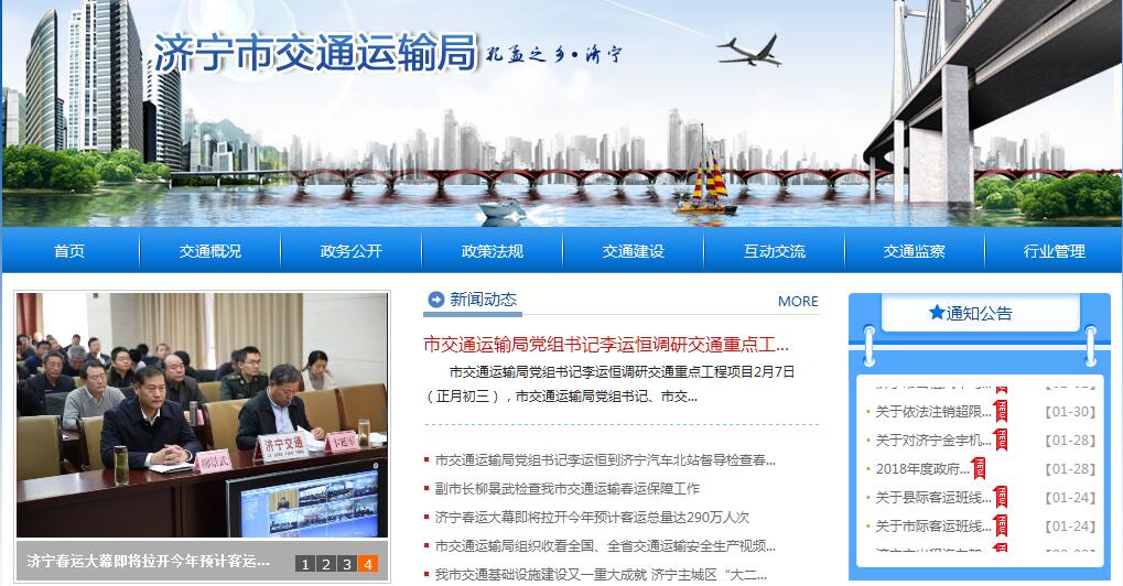 济宁市交通运输局承担全市道路、水路、民用航空运输市场监管责任。其主要职责:(一)贯彻执行国家、省关于公路、水路、民用航空的方针政策、法律法规,拟订规范性文件并组织实施;贯彻落实国家、省各类交通运输行业规划、计划并监督实施;拟订全市公路、水路、民用航空行业规划、计划并监督实施;拟订城乡交通一体化的政策措施并组织实施;会同有关部门组织编制综合运输体系规划,承担涉及综合运输体系规划有关问题的协调工作;优化交通运输布局,促进各种交通运输方式相互衔接;参与拟订现代物流业发展战略和规划;指导交通运输枢纽规划、建设和管理。(二)承担全市道路、水路、民用航空运输市场监管责任;拟订道路、水路、民用航空运输有关政策、准入制度、运营规范、技术标准并监督实施;负责道路、水路客货运输和客货运输站场经营监管工作;负责公路、水路、民用航空客货运输、危险品运输安全生产监管工作;指导公路、水路、航空服务行业管理、安全生产和应急管理工作;承担水上交通安全监管责任;负责市辖内河水上交通管制、救助打捞、危险品运输监督管理工作;参与调查处理水上交通安全事故;负责船舶(不含渔业船舶)及相关水上设施检验、登记、防止污染工作;指导港口设施保安管理工作;负责交通稽查工作;按规定组织协调重点物资、紧急客货运输;负责机动车维修管理工作;负责全市汽车驾驶培训机构的资格管理工作。(三)负责提出公路、水路、民用航空固定资产投资规模和方向、政府财政性资金安排建议;拟定全市公路、水路有关规费政策并监督实施,提出有关财政、土地、价格等政策建议;负责公路通行费收费、内河船闸、超限超载检测站点设置的审核报批工作;集中审核、报批、管理交通运输行业的各类建设、养护资金;指导行业投融资工作。(四)承担公路、水路、民用航空基础设施建设市场监管责任;负责交通运输行业招投标活动的行政监督,维护建设市场平等竞争秩序;组织协调公路、水路、民用航空有关重点工程建设和工程质量、安全生产监督管理工作,指导公路、水路、民用航空基础设施管理和维护工作;按规定负责港口、航道布局规划和岸线使用管理工作。(五)按规定协助做好高速公路的管理工作;提出全市国道、省道布局规划的建议,组织公路及其附属设施的建设、养护和管理;监督和指导农村公路的规划、建设、养护、管理工作。(六)贯彻实施交通技术标准和规范,组织行业科技开发,推动技术进步;组织实施交通信息化建设;指导公路、水路、民用航空运输行业环境保护和节能减排工作。(七)综合分析、预测交通运输行业经济运行情况;引导交通运输行业优化结构,协调发展;负责相关行业统计,发布有关信息。(八)负责交通运输系统人才队伍建设、职工教育培训工作,指导行业精神文明建设;指导公路、水路、民用航空行业有关体制改革工作。(九)指导交通运输方面的合作与交流工作;负责相关涉外运输的管理工作。(十)负责全市交通战备工作,承办市国防动员委员会的有关工作。(十一)承办市委、市政府交办的其他事项。