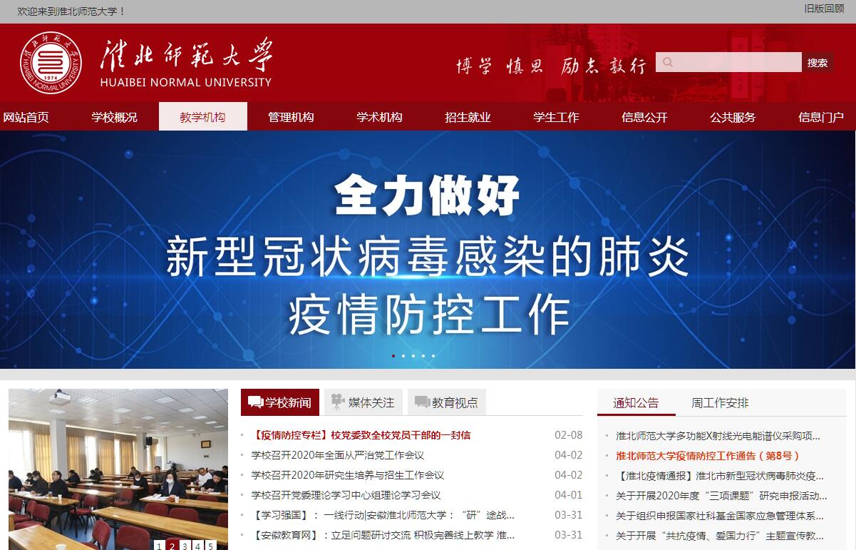 淮北师范大学位于全国文明城市、国家园林城市安徽省淮北市,是一所多科性省属重点大学。1974年建校,时为安徽师范大学淮北分校。1978年12月经国务院批准,定名为淮北煤炭师范学院,隶属原煤炭工业部,面向全国招生。1998年9月实行“中央与地方共建,以安徽省管理为主”的管理体制。2010年3月经教育部批准,更名为淮北师范大学。2003年获得硕士学位授予权。2007年在教育部本科教学工作水平评估中获得“优秀”等次。2009年增列为省级立项建设博士研究生培养单位和博士后培养单位。学校有相山、滨湖两个校区,占地面积3000余亩。校园依山而建,自然环境优美,人文气息浓厚,先后被评为“安徽省园林式单位”、“全国绿化模范单位”。校舍建筑面积74万平方米,中外文纸质藏书和电子文献420余万册。实验室设备先进、功能齐全,有教学科研仪器设备27000余台件,总值2.27亿元,很好地满足了教学科研和人才培养需要。现有18个学院、82个本科专业,2018年本科专业整体进入安徽省一本招生。有15个一级学科硕士学位授权点、7个专业学位授权点,涵盖10大学科门类。学校师资队伍结构合理,实力较强。现有专任教师1100余人,其中具有博士学位330余人、硕士学位700余人,具有高级专业技术职称500余人。有“双聘”院士2名,“国家特支计划”百千万工程领军人才1名,“新世纪百千万人才工程”国家级人选1名,“皖江学者”讲席教授3名,青年“皖江学者”2名,教育部优秀青年教师资助计划人选1名,省杰出专业技术人才1名,省学术和技术带头人及后备人选17名,省高校学科拔尖人才8名,省高校中青年学科带头人27名,省高校优秀中青年骨干教师57名,全国优秀教师、“五一”劳动奖章获得者14名,享受政府特殊津贴者14名,曾宪梓教育基金奖获得者13名,省教学名师20名,省优秀教师、师德标兵、优秀党务工作者14名。学校具有较强的教研、科研实力。现拥有5个国家级特色专业,1个国家级专业综合改革试点,1个国家级特殊教育师资培养培训重点基地,1个国家级校企合作实践教育基地。10个省级特色专业,15个省级专业综合改革试点,7个省级教学团队,12个省级示范实验实训中心,2个省级虚拟仿真实验教学中心,2个省级人才培养模式创新实验区,6个省级校企合作实践教育基地、60余门省级精品开放课程。拥有5个省级重点学科,5个省级博士学位授权立项建设学科,1个省级学科建设重大项目立项学科,1个安徽省重点实验室,3个省级重点实验室,1个省级协同创新中心,2个省级人文社科重点研究基地,4个省级科技创新团队,1个省级“115”产业创新团队,2个省级智库。近年来承担省部级及以上教学研究项目160余项,获省级教学成果奖70余项;承担国家级科研课题120余项,省部级科研课题300余项,被SCI、EI、ISTP、CSSCI检索收录论文2600余篇,获省部级以上科研奖励70余项,其中国家级奖励5项。学校主办《淮北师范大学学报》(哲学社会科学版、自然科学版)、《安徽文献研究集刊》等刊物,并与安徽大学、安徽省古籍办等联合主办《古籍研究》(入选2012—2013年度CSSCI来源集刊目录)。2015、2016年学校连续两次进入全球科研机构自然指数(Nature Index)中国大学百强榜(2016年位居中国内地高校第92名,师范院校第16名)。2017年,化学学科进入ESI全球前1%,论文总被引频次位居中国内地高校第23位。学校加强校地、校企合作,构建协同育人机制,积极推进产学研用相结合,服务地方发展成效显著。近年来,学校与地方人民政府、企事业单位签订产学研合作协议,培育了一批融实习教学与就业实训一体的产学研合作基地,构建实习、就业、创业一体化协同育人机制。近3年,学生集体及个人共获得国家级奖励250余项,省级奖励1000余项。本科毕业生初次就业率均在90%以上,就业满意率均在92%以上。学校重视对外交流与合作,与美国、英国、法国、德国、俄罗斯、日本、韩国、泰国、菲律宾、马来西亚、台湾地区等国家和地区的40所院校(机构)建立校际合作关系,并签订具体合作协议。近3年,学校派出150余名师生赴国(境)外参加访学研修、学术交流和学习;接收日本长崎大学学生短期留学。学校办学水平得到了上级部门高度肯定和社会广泛赞誉。学校连续获批安徽省第十届、十一届文明单位,获批安徽省首届教育系统文明单位,并为淮北市获批全国文明城市作出重大贡献。学校多次获批“全国煤炭行业教育工作先进单位”“安徽省人才工作先进单位”“安徽省文明单位”“安徽省就业工作先进集体”等荣誉称号,连续26次获得中宣部、教育部、团中央授予的“全国大学生社会实践先进单位”和“优秀服务团队”称号。