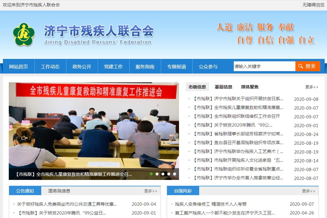 济宁市残疾人联合会是经济宁市人民政府批准和国家法律确认的将残疾人自身代表组织、社会福利团体和事业管理机构融为一体的残疾人事业团体。其宗旨是:弘扬人道主义,促进残疾人平等、充分参与社会生活,共享社会物质、文化成果。具有“代表、服务、管理” 三种职能:代表残疾人共同利益,维护残疾人合法权益;团结教育残疾人,为残疾人服务;履行法律赋予的职责,承担政府委托的任务,管理和发展残疾人事业。其主要职责:(一)宣传贯彻《中华人民共和国残疾人保障法》及其相关法规,维护残疾人在政治、经济、文化、社会和家庭生活等方面同其他公民平等的权利,密切联系残疾人,听取残疾人意见,反映残疾人需求,全心全意为残疾人服务。(二)团结、教育残疾人遵守法律,履行应尽义务,发扬乐观进取精神,自尊、自信、自强、自立,为全面建设小康社会,推进现代化建设贡献力量。(三)沟通政府、社会与残疾人之间的联系,宣传残疾人事业,动员社会理解、尊重、关心、帮助残疾人。(四)开展和促进残疾人康复、教育、就业、扶贫、社会保障、维权、文化体育、和残疾预防等工作,改善残疾人参与社会生活的环境和条件。(五)参与研究、制定和实施残疾人事业的法律、法规、政策、规划和计划,发挥综合、协调、咨询、服务作用,对有关领域的工作进行管理和指导。(六)承担济宁市人民政府残疾人工作委员会的日常工作。(七)管理和发放《中华人民共和国残疾人证》。(八)管理和指导各类残疾人群众组织,培养残疾人工作者,使残疾人在残疾人组织中更加活跃,残疾人组织在基层更加活跃,残疾人和残疾人组织在社会上更加活跃。(九)开展残疾人事业的对外交流与合作。(十)承担济宁市人民政府交办的其他工作。
