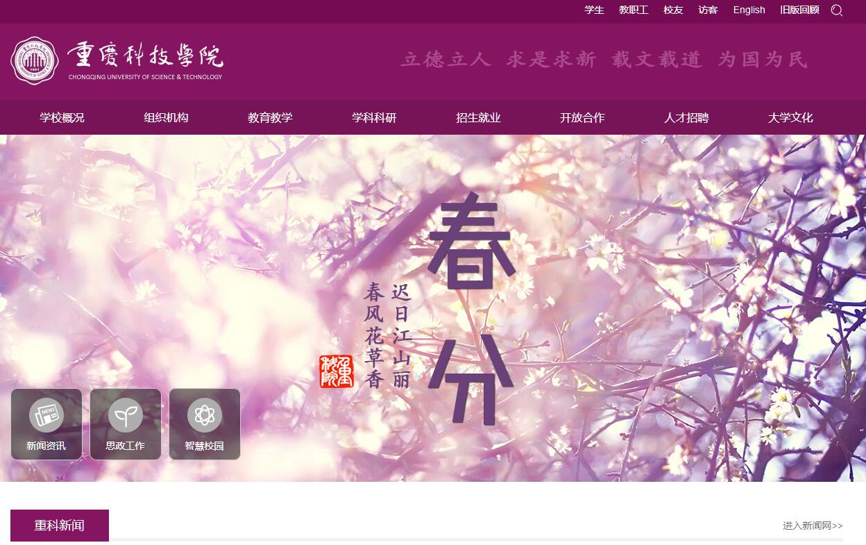 重庆科技学院是一所全日制公办普通本科院校,由两所1951年开始办学并保持良好声誉的原中央部委属学校——重庆工业高等专科学校和重庆石油高等专科学校(全国示范性高工专重点建设学校)合并组建,2004年5月经国家教育部正式批准设立。学校是全国卓越工程师教育培养计划试点单位、全国应用技术大学(学院)联盟副理事长单位、全国新建本科院校联盟副理事长单位、重庆市属高校转型发展联盟理事长单位,被评为全国创新创业典型经验高校、全国深化创新创业教育改革示范高校。2018年,学校获批成为硕士学位授予单位。学校占地2200亩,建筑总面积60余万平方米,教学仪器设备总值3.82亿元。位于重庆大学城占地1500亩的新校区东邻歌乐山国家级森林公园,西有缙云山国家级森林公园,地理优势得天独厚,学习、生活和文化体育运动设施齐全配套,是重庆市“文明单位”和“园林式单位”。学校图书馆建筑面积4.2万多平方米,藏书293.6万册,并拥有大批数字化信息资源。现有教职工1500余人,其中中国科学院院士1人、中国工程院院士1人,高级职称600余人,博士340余人,硕士及以上比例90%;有省(直辖市)级以上学术带头人、学术带头人后备人选共4人,中青年骨干教师(含资助计划)41人。现有全日制在校学生2万余人,其中:研究生400余人,留学生300余人。近四年来,毕业生就业率一直保持在92%以上,2017届毕业生初次就业率达到94.71%。设石油与天然气工程学院、冶金与材料工程学院、机械与动力工程学院、电气工程学院、化学化工学院、建筑工程学院、安全工程学院(应急管理学院)、马克思主义学院、工商管理学院、法政与经贸学院、数理与大数据学院、外国语学院、人文艺术学院、体育部、智能技术与工程学院、职业技术师范学院(继续教育学院、自考办)。有石油与天然气工程、安全工程、地质工程和冶金工程共4个领域专业硕士点和石油工程、冶金工程、机械设计制造及其自动化、计算机科学与技术、化学工程与工艺、土木工程、安全工程、会计学、国际经济与贸易、数学与应用数学、英语、艺术设计等57个本科专业。其中,石油工程、冶金工程是国家级特色专业和重庆市一流本科专业,石油工程、冶金工程、油气储运工程、无机非金属材料工程、自动化专业是国家卓越工程师教育培养计划专业。有市级特色学科专业群5个、市级特色专业11个、市级专业改革综合试点专业2个。冶金工程、无机非金属材料工程、自动化、工程管理、建筑环境与能源应用工程专业通过工程教育专业认证,进入全球工程教育“第一方阵”。深化教育教学改革,加大教育教学平台与课程建设、教材建设,有国家级实验教学示范中心2个、国家级虚拟仿真实验教学中心1个、国家级工程实践教育中心4个、国家级大学生校外实践教育基地4个,市级人才培养模式创新实验区4个、市级实验教学示范中心8个、市级大学生校外实践教育基地2个、省部级质量工程项目29项。《液压传动技术》为国家级精品课程,《数据结构与算法》为国家级双语教学示范课程,《打开石油的天窗》为国家级精品视频公开课。学校还建有重庆市级教学团队9个、精品课程9门、双语教学示范课程3门、精品视频公开课9门、精品资源共享课6门。学校以工为主,以石油与化工、冶金与材料、机械与电子、安全与环保为特色,理、工、经、管、法、文、艺多学科协调发展,行业优势突出、办学特色鲜明。有石油与天然气工程、材料科学与工程、机械工程、控制科学与工程、安全科学与工程等5个省部级重点学科,有复杂油气田勘探开发、纳微复合材料与器件、非矿山安全与重大危险源监控、职业危害检测与鉴定、工业发酵微生物等5个省部级重点实验室,非常规油气田开发、工业过程在线分析与控制、复杂金属矿产资源增值处理与清洁提取等3个重庆市高校重点实验室,有省部级协同创新中心1个、工程技术研究中心7个、高校工程研究中心3个、社科研究中心1个、科普基地3个。2011年以来,承担了国家863重大专项、国家自然科学基金和国家社会科学基金等近100项国家级课题,获授权专利、发明专利、实用新型专利、软件著作权登记、外观设计等近1300项,学术著作近120部,有近2200篇论文被美国《科学引文索引》(SCI)和《工程索引》(EI)等检索和收录。2012年以来,年科研经费均超过亿元。学校科研成果获得国家科技进步特等奖、国家技术发明等省部级及以上科学进步奖60余项。其中,参与完成的“超深水半潜式钻井平台‘海洋石油981’研发与应用”获2014年度国家科技进步奖特等奖,“机械炉排式生活垃圾焚烧发电关键技术及应用”被授予中国产学研合作创新成果奖。积极开展国内外合作办学和科学研究,与美国哥伦比亚大学、美国加州大学、墨西哥维拉克鲁斯大学、韩国国立昌原大学、英国爱伯斯特维斯大学、加拿大劳里埃大学、台湾中央大学、重庆大学、北京科技大学、中国石油大学、西南石油大学、西安科技大学、中国人民解放军陆军勤务学院等60余所高校建立了教学、科研、人才培养等合作关系;学校依托行业办学,与中石油、中石化、中海油、武钢、西南铝、重钢、美国卡万塔能源公司、美国国际钻井承包商协会(IADC)等300余家国内外知名企业签订了产学研合作的战略协议。全面贯彻党的教育方针,坚持全