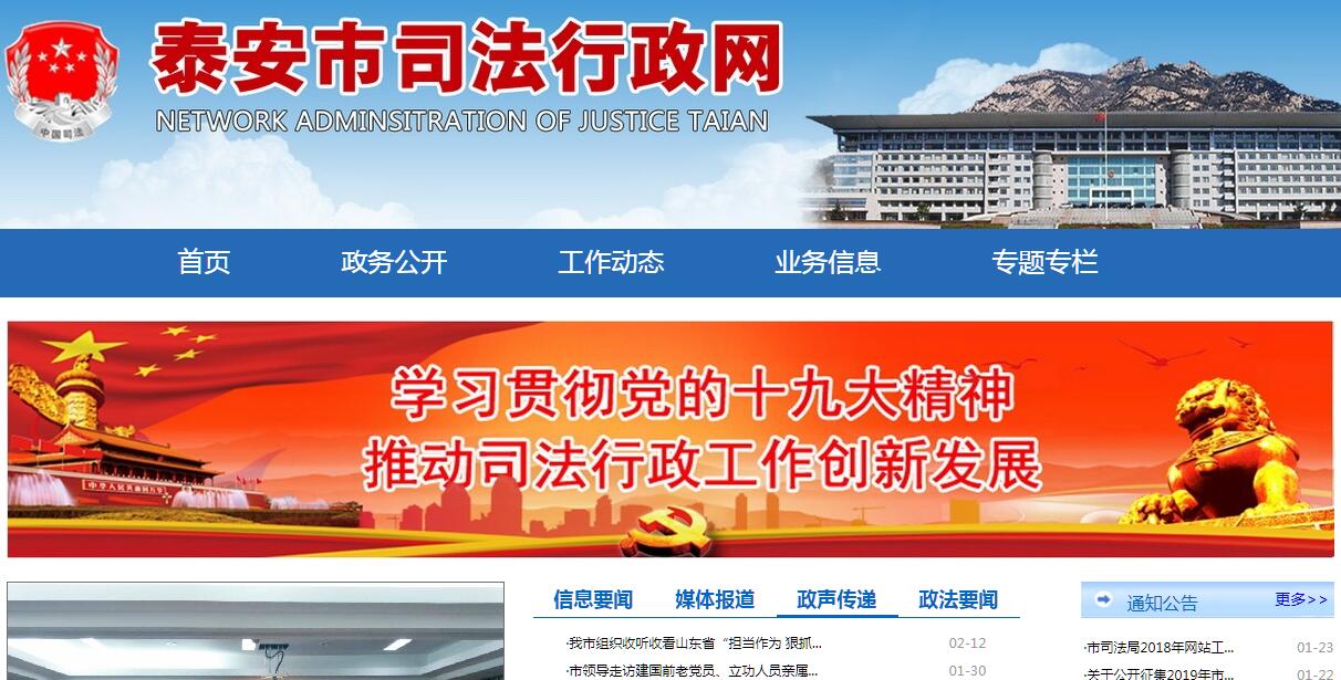 泰安市司法局主要职责:(一)贯彻执行党和国家司法行政工作方针政策和法律法规,拟订全市司法行政工作规划、年度计划并组织实施。(二)负责拟定全市法制宣传教育和全民普及法律常识规划、依法治理工作规划并组织实施;指导全市对外法制宣传。(三)负责管理和指导全市律师、公证工作并承担相应责任。(四)负责指导、监督全市司法所、社区司法行政工作室建设和人民调解、基层法律服务、帮教安置工作;参与社会治安综合治理工作;配合人民法院做好人民陪审员工作。(五)负责指导和管理全市社区矫正工作,研究制定社区矫正工作规划和管理制度并组织实施。(六)负责全市人民监督员的选任管理和培训工作。(七)负责全市基层法律服务工作者的执业核准工作。(八)负责全市司法鉴定人和司法鉴定机构管理工作。(九)负责全市仲裁机构的审核、申报工作。(十)负责组织指导全市公共法律服务体系建设工作。(十一)负责协调和指导全市“148”法律服务专线工作。(十二)负责管理和指导全市法律援助工作。(十三)按规定承担国家司法考试的有关工作。(十四)负责全市司法行政系统装备管理工作。(十五)负责协同推进社会组织党建工作。(十六)指导全市司法行政系统的队伍建设和思想政治工作;负责全市司法行政系统警务管理和警务监察工作;协助管理县(市、区)司法行政部门负责人。(十七)承办市委、市政府交办的其他事项。