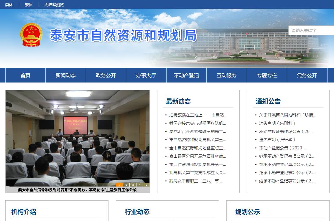 泰安市自然资源和规划局贯彻落实党中央关于自然资源规划工作的方针政策和工作要求,落实省委、市委工作部署,在履行职责过程中坚持和加强党对自然资源规划工作的统一领导。其主要职责是:(一)依法履行全市全民所有土地、矿产、森林、草原(地)、湿地、水等自然资源资产所有者职责和所有国土空间用途管制职责。贯彻执行自然资源和国土空间规划及测绘等方面法律法规和方针政策,起草有关地方性法规、规章草案。(二)负责全市自然资源调查监测评价。执行国家关于自然资源调查监测评价的指标体系、统计标准和制度规定,实施自然资源基础调查、专项调查和监测。负责自然资源调查监测评价成果的监督管理和信息发布。指导县(市、区)自然资源调查监测评价工作。(三)负责全市自然资源统一确权登记工作。拟定全市自然资源和不动产统一确权登记、权籍调查、不动产测绘、争议调处、成果应用的制度、标准、规范并组织实施。建立健全全市自然资源和不动产登记信息管理基础平台。负责自然资源和不动产登记资料收集、整理、共享、汇交管理等。负责市区自然资源和不动产确权登记以及房产交易的管理工作,指导监督县(市)自然资源和不动产确权登记工作。(四)负责全市自然资源资产有偿使用工作。落实国家全民所有自然资源资产统计制度,拟定并组织实施全民所有自然资源资产划拨、出让、租赁、作价出资和土地储备政策,合理配置全民所有自然资源资产。负责自然资源资产价值评估管理,依法收缴相关资产收益。(五)负责全市自然资源的合理开发利用。组织拟订自然资源发展规划和战略,制定自然资源开发利用标准并组织实施,建立政府公示自然资源价格体系,组织开展自然资源分等定级价格评估,开展自然资源利用评价考核,研究拟定自然资源节约集约利用的政策并组织实施。负责自然资源市场监管。管理监督城乡建设用地供应。开展自然资源形势分析,组织研究自然资源管理涉及宏观调控、区域协调和城乡统筹的政策措施。(六)负责建立全市空间规划体系并组织实施。组织编制并监督实施国土空间规划和相关专项规划。开展国土空间开发适宜性评价,建立国土空间规划实施监测、评估和预警体系。组织划定生态保护红线、永久基本农田、城镇开发边界等控制线。建立健全国土空间用途管制制度,研究拟订城乡规划政策并监督实施。组织拟订并实施土地等自然资源年度利用计划。负责土地等国土空间用途转用工作。负责土地征收征用管理。(七)负责规划区内控制性详细规划和城市设计的编制报批工作。负责全市城乡规划设计市场管理。负责规划区内修建性详细规划和建设工程的规划管理工作。参与重大建设项目的可行性研究并提出规划意见。承担市城市规划委员会和市城市规划联合审查委员会办公室的日常工作。(八)负责统筹全市国土空间生态修复。牵头组织编制国土空间生态修复规划并实施有关生态修复重大工程。负责国土空间综合整治、土地整理复垦、矿山地质环境恢复治理等工作。落实国家生态保护补偿制度,制定合理利用社会资金进行生态修复的政策措施,提出重大备选项目。(九)落实综合防灾减灾规划相关要求,负责全市地质灾害的预防和治理工作,组织编制地质灾害防治规划、计划并组织实施。组织指导全市地质灾害调查评价、专业监测和预报预警等工作。承担地质灾害应急救援的技术支撑工作。(十)负责组织实施最严格的耕地保护制度。牵头拟订并实施全市耕地保护政策,负责耕地数量、质量、生态保护。组织实施耕地保护责任目标考核和永久基本农田特殊保护。完善耕地占补平衡制度,监督占用耕地补偿制度执行情况。(十一)负责全市矿产资源管理工作。负责矿产资源储量管理及压覆矿产资源审核。负责全市规划矿区、对国民经济具有重要价值的矿区的管理。依法进行矿业权管理。监督指导矿产资源合理利用和保护。负责全市地质勘查行业和全市地质工作。编制地质勘查规划并监督检查执行情况。管理市级地质勘查项目。(十二)负责全市测绘地理信息管理工作。负责基础测绘和测绘行业管理。负责测绘资质资格与信用管理,监督管理地理信息安全和市场秩序。负责地理信息公共服务管理。负责测量标志保护。组织实施自然资源和规划领域科技创新能力建设,推进自然资源规划信息化和信息资料的公共服务。(十三)负责规范土地和矿产资源以及测绘市场秩序,对全市土地、矿产等自然资源开发利用活动进行监测和管理。负责查处泰山区、岱岳区、高新区范围内的自然资源开发利用和测绘违法行为。指导监督县(市)自然资源行政执法工作。(十四)负责对全市国土空间规划开发利用活动进行监测和管理。负责查处规划区范围内(不含泰山景区、高新区管辖区域)的城乡规划违法行为。指导监督区、镇城乡规划行政执法工作。(十五)按照规定统一领导和管理市林业局。(十六)完成市委、市政府交办的其他任务。