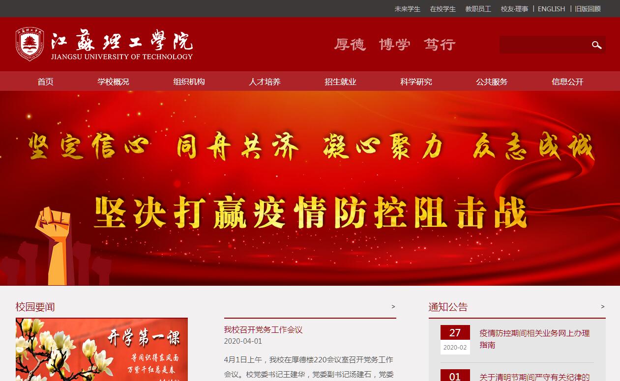 江苏理工学院是省属全日制普通高校,地处被誉为“千载读书地,现代创新城”的国家历史文化名城、长江三角洲重要的现代制造业基地——江苏省常州市。学校创建于1984年,历经常州职业师范学院、常州技术师范学院、江苏技术师范学院等时期,2012年更名为江苏理工学院。学校是教育部本科教学工作水平评估优秀单位、“服务国家特殊需求人才培养项目”硕士专业学位研究生培养试点单位、全国首批职教师资培训重点建设基地和江苏省首批决策咨询研究基地。学校占地面积近1500亩,建筑面积50万余平方米,教学仪器设备总值近3亿元,中外文藏书160余万册。设有机械工程学院、化学与环境工程学院、教育学院等21个教学科研单位,建有新能源汽车学院、医疗器械学院、刘海粟艺术学院、赵元任语言文化传播学院等多个行业学院和研究院,开设59个本科专业,在机械工程、环境工程两个领域招收硕士专业学位研究生,形成了以工科为主,多学科协调发展的办学格局。学校现有全日制在校本科生近18000人、硕士研究生220余人、留学生120余人。现有教职工1300余人,专任教师1000余人、中国科学院院士1人(双聘)、正高职称教师130余人、博士学位教师310余人、硕博研究生导师170余人,聘请学术和产业界知名专家100余人担任特聘教授或兼职教授。有多人享受国务院特殊津贴,或获全国优秀教师、江苏省有突出贡献的中青年专家、江苏省教学名师等荣誉称号,有100余人次获批江苏省“333工程”“青蓝工程”等中青年科技领军人才、学术带头人、骨干教师。学校坚持“以人为本、注重能力、分型培养”的人才培养理念,以行业产业定专业布局,以经济社会发展需求定人才规格,以科技进步和产业升级定教学内容,培养应用型高级专门人才。现有教育部产教融合创新基地合作项目、国家级大学生校外实践教学基地、江苏省现代职教体系试点项目等省级以上人才培养项目(基地)20余项(个),国家级特色专业、国家级精品资源共享课等省级以上品牌专业、精品课程20余个(门),获得省级以上教学成果奖19项。学生获“小平科技创新团队”、“挑战杯”全国大学生课外学术科技作品竞赛二等奖、“挑战杯”全国大学生创业计划竞赛银奖、全国大学生“飞思卡尔”杯智能汽车竞赛一等奖等省级以上各类科技创新创业竞赛奖1000余项。建校以来,为地方经济社会发展培养输送了6万余名毕业生,培训了数万名中高职教师及其他专业技术人员。毕业生深受用人单位的欢迎,就业率持续保持在95%以上。学校紧密结合国家发展战略和区域发展特色,优化学科结构,加强应用研究,形成了环境科学与工程、机械工程、教育学等一批引领性学科,打造了“资源循环利用”、“职业技术教育”等学科亮点。现有江苏省重点(培育、建设)学科7个,国家级技术转移中心、国家大学科技园分园、省工程(技术研究)中心、省高校重点(建设)实验室等省级以上学科科研平台近20个。近5年,学校主持承担了国家科技支撑计划重大项目、国家自然科学基金项目、国家社会科学基金项目等国家和省部级科研项目200余项,横向科研课题500余项,科研经费近3亿元,获得省部级以上科研成果奖50余项,国家授权发明专利250余件。学校充分发挥高校人才、资源和技术优势,加强智库建设,推进与行业企业产业的工程技术协同创新,加大产业从业人员技术技能培训,关注地方文化传承与创新,深化与地方政府、行业、企业(社区)的多层次合作,与10多个省内外市、区建立校地战略合作关系,与行业协会、知名企业、大院大所共建产学研基地150余家及研究机构40余家,与地方政府部门共建常州产业研究院、常州市名人研究院、常州市青少年心理研究与指导中心等多个研究平台,为地方经济社会发展和产业升级作出了积极贡献。学校大力实施国际化发展战略,积极引进国际先进办学理念、标准和资源,重点打造以中德合作为主的国际合作办学特色,先后与德国、美国、英国、韩国、乌克兰、以色列、哈萨克斯坦以及澳门、台湾等国家和地区的20余所高校建立紧密的合作与交流关系。每年选派专家、学者赴德、美、英、加、日、韩、澳等国家进行访学或交流,聘请外籍教师百余名来校从事教学、科研活动。目前面向韩国、俄罗斯及中亚国家招收留学生。学校获得“江苏省文明单位”“江苏省高校先进基层党组织”“全国语言文字工作先进集体”“全国五四红旗团委”“全国大学生暑期社会实践活动先进单位”“江苏省高校和谐校园”“江苏省师资队伍建设先进高校”“江苏省高等学校思想政治教育工作先进集体”“江苏省教育科研先进集体”“江苏省高校毕业生就业工作先进集体”“江苏省大学生创业教育示范校”等荣誉称号。进入新的发展时期,学校将秉承“厚德、博学、笃行”的校训,坚持地方性、应用型、国际化,主动服务国家战略,深度融入地方经济社会发展,紧贴行业产业发展需求,立足江苏,服务长三角,辐射全国,继往开来,实干创新,朝着建设有特色高水平应用型大学的奋斗目标阔步前进!
