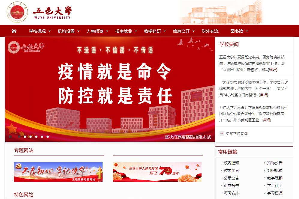 五邑大学是由广东省人民政府于1985年设立的以工科为主的多科性大学,是广东省较早获得硕士、学士学位授予权的地方高校,具有接收港澳台侨学生、国际学生资格和优秀应届本科毕业生推荐免试攻读研究生资格,现为广东省高水平理工科大学建设高校。学校坚持践行“好学、多思、求实、创新”的校训,秉承“根植侨乡,服务社会,内外合力,特色发展”的办学理念,积极培养思想品德高尚、基础知识扎实,具有国际化视野、较强实践能力和创新创业能力,适应地方经济社会发展需求的高素质应用型人才。学校地处“中国第一侨乡”——广东省江门市,校园占地面积1000余亩,总建筑面积近70万平方米。环境优美,基础设施齐全,办学条件良好。学校面向全国24个省区市、港澳台地区招收本科学生,面向国内外招收研究生。现有各类在籍学生2.4万余人,其中全日制本科生1.9万人,研究生400余人。学校设有17个教学机构,76个本科专业(方向),涉及工、理、经、管、文、法、艺术等7个学科门类,理工类专业(方向)占比63.2%。现有国家级特色专业、国家级专业综合改革试点共5个,省级重点(名牌)专业、省级应用型人才培养示范专业等共32个,国家级大学生校外实践教育基地1个,省级大学生实践教学基地17个,省级实验教学示范中心14个;建有轨道交通综合实验中心、化学与环境工程实验中心、光机电工程教育中心、现代纺织工程实验中心、艺术设计综合实验中心等一批工科实验实训基地,其中轨道交通综合实验中心是目前全省该类专业规模最大、综合性最强、功能最全的实验实训大平台。本科生初次就业率多年位居全省公办本科高校首位,人才培养质量得到社会广泛认可。学校现有7个省级重点学科,6个一级硕士学位授权点和5个独立二级硕士学位授权点(共27个二级硕士学位授权点)和工程硕士、教育硕士两个类别共10个专业硕士授权领域,硕士授权覆盖学校所有理工科专业。学校现有在职教职工1000余人,其中专任教师800余人,高级职称占比近50%,博士学位占比达42%;拥有国家级高层次人才20余人(院士3人、长江学者1人、国家“杰青”3人、国家“千人计划”特聘专家2人、国家“千人计划”青年项目入选者9人、国家“优青”2人、国家“万人计划”入选者1人等),省级高层次人才3人,海外各类优秀人才40余人。学校拥有省级新型研发机构1个、省级工程技术研究中心8个、省级人文社科研究基地2个、省级非物质文化遗产研究基地1个,建有广东高校摩托车先进设计与制造工程技术研究中心等市厅级科研平台41个。其中“广东省侨乡文化与遗产协同创新发展中心”成为省首批认定的20个协同创新平台之一。广东侨乡文化研究中心作为主要学术支持、首席专家单位,为广东省获得第一个世界文化遗产——开平碉楼与村落及世界记忆遗产——侨批档案作出杰出贡献,研究中心在文化遗产挖掘与保护的研究水平和成果转化能力居全国领先水平,在国际上也具有较大的影响力。学校大力开展对外交流合作。先后与美国、英国、德国等14个国家和地区42所高校建立了合作关系,在学科建设、人才培养、学术研究、师资培训等方面开展了实质性合作。其中,与美国罗格斯大学、英国利物浦热带医学院、德国卡尔斯鲁厄理工学院、香港科技大学等国(境)外高水平大学建立了海外联合研发和研究生联合培养基地。新时代、新使命、新征程、新作为。五邑大学将高举中国特色社会主义伟大旗帜,全面贯彻落实党的十九大精神,以习近平新时代中国特色社会主义思想为指引,继续秉承“根植侨乡,服务社会,内外合力,特色发展”的办学理念,不断加强内涵建设,进一步加强特色建设,着力提升办学质量和水平,为建设“应用型人才培养特色鲜明,服务地方产业发展能力突出”的高水平理工科大学而努力奋斗!