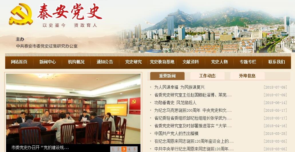 1981年4月泰安地委设立党史资料征集小组,1982年3月改建为党史资料征集委员会1985年5月,泰安撤区设市,原地委党史委改称为中共泰安市委党史资料征集研究委员会。1996年4月,在市级机构改革中,市委党史资料征集研究委员会更名为中共泰安市委党史征集研究办公室,6月确定为参照国家公务员制度进行管理的事业单位。中共泰安市委党史征集研究办公室,是在市委领导下的承担行政职能的中共泰安地方党史征集研究部门。主要职责是:1、认真贯彻落实中央和省委党史研究室确定的党史工作方针、任务,研究制定全市党史工作规划和年度工作计划,开展全市党史资料的征集、研究、编纂、出版和宣传教育工作。2、征集、整理、编纂泰安党史资料,进行党史研究,总结党的历史经验教训,编写出版泰安地方党史及重要专题党史书籍,搜集利用国内外研究中共党史特别是有关泰安党史的重要信息和资料。3、负责对我市革命遗址和纪念设施的管理、保护、开发和建设工作,以革命遗址和设施为重要基地,广泛开展党的历史和革命传统教育工作。4、承办中央和省委党史研究室下达的有关泰安党史的征集、研究任务。5、完成市委交办的各项工作,为市委解决有关党史问题提供资料和意见。6、协调有关部门开展全市党史资料的征集、整理与编写;会同有关部门开展党史教育、革命传统教育和爱国主义教育。7、对县市区党史工作进行业务指导,加强党史队伍建设,搞好党史工作经验交流。培训党史业务骨干。8、指导泰安市中共党史学会的工作,组织开展有关党史方面的学术研究和交流。