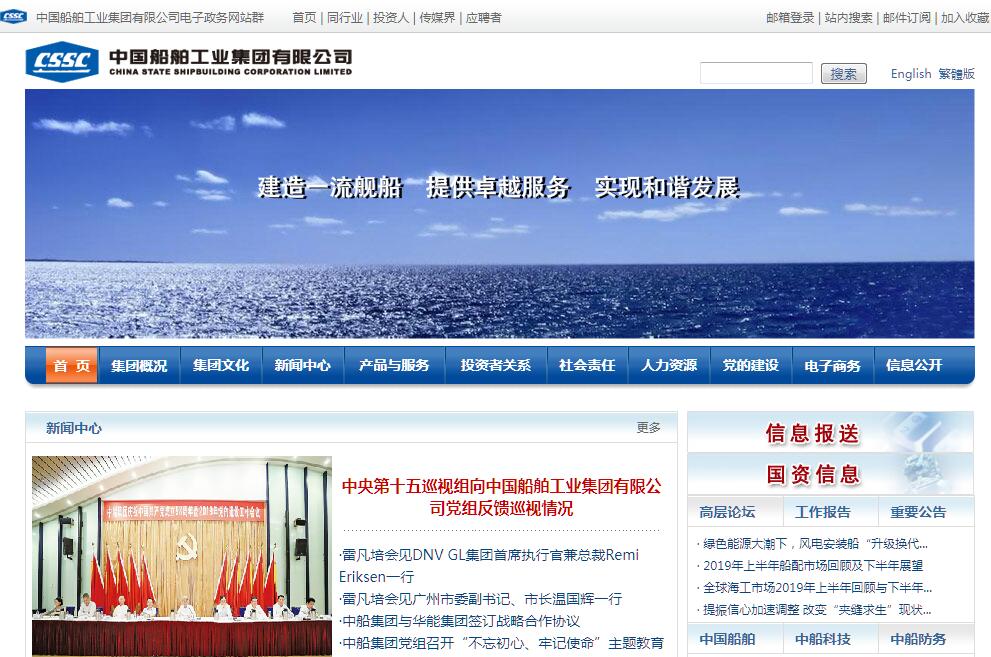中国船舶工业集团有限公司(简称“中船集团”)组建于1999年7月1日,是在原中国船舶工业总公司所属部门企事业单位基础上组建的中央直属特大型国有企业,是国家授权投资机构,由中央直接管理,在世界500强中名列第364位。1963年9月,国务院决定将船舶工业从三机部分出来成立第六机械工业部。1982年5月,经国务院批准,在六机部135个企事业单位和交通部15个企事业单位基础上组建成立中国船舶工业总公司。1999年7月,经国务院批准,在原中国船舶工业总公司基础上组建中国船舶工业集团公司和中国船舶重工集团公司。2017年底,公司正式改制为中国船舶工业集团有限公司。截至2017年底,中船集团拥有40余家二级单位,分布在北京、上海、广东、江苏、江西、安徽、广西、香港等地,拥有中国船舶工业股份有限公司、中船海洋与防务装备股份有限公司、中船钢构工程股份有限公司3家上市公司。中船集团在中国香港及美国、俄罗斯、泰国等8个国家和地区设有驻外机构。中船集团旗下聚集了一批实力雄厚的造修船企业和船舶配套企业,包括江南造船(集团)有限责任公司、沪东中华(造船)集团有限公司、上海外高桥造船有限公司、上海江南长兴造船有限公司、广船国际有限公司、中船黄埔文冲船舶有限公司等,还拥有中国船舶及海洋工程设计研究院、上海船舶研究设计院、广州船舶与海洋工程设计研究院3家船舶研究设计机构,以及中船第九设计研究院工程有限公司等知名工程咨询、设计、总包单位。中船集团能够设计、建造符合世界上任何一家船级社规范、满足国际通用技术标准和安全公约要求、适航于任一海区的现代船舶,以及具有国际先进水平的大型海洋工程装备产品,产品种类从普通油船、散货船到具有当代国际先进水平的超大型油船(VLCC)、液化天然气(LNG)船、大型集装箱船、液化石油气(LPG)船、液化乙烯(LEG)运输船、自卸船、化学品船、客滚船及超深水半潜式钻井平台、自升式钻井平台、大型海上浮式生产储油船(FPSO)、多缆物探船、深水工程勘察船、大型半潜船等,形成了多品种、多档次的产品系列,产品已出口到150多个国家和地区。