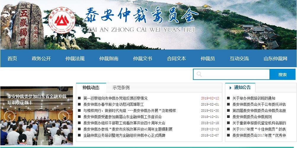 | 网站简介: 泰安仲裁委员会是依照《中华人民共和国仲裁法》组建的我市唯一的仲裁经济纠纷的机构,法定职责是依法受理平等主体的公民、法人和其他组织之间发生的合同纠纷和其他财产权益纠纷。劳动、人事及农村集体土地承包纠纷不属于本委受理范围。泰安仲裁委员会办公室是泰安仲裁委员会的日常办事机构,根据《中华人民共和国仲裁法》和有关法律、法规开展工作。其主要职责:(一)贯彻执行仲裁法及其他党和国家有关仲裁工作的方针政策、法律法规,研究拟定我市有关仲裁方面的文件规定,并负责组织实施。(二)落实执行《民事诉讼法》、《调解法》、《物权法》、《合同法》等法律,并依据上述法律指导规范仲裁裁决行为。(三)依法受理仲裁案件,送达仲裁文书,组织管理案件审理工作。(四)收取、管理仲裁费,管理档案,为仲裁员支付报酬。(五)管理仲裁员,负责仲裁员的聘任、监督、培训等工作。(六)组织推行仲裁法律制度,增强企业和公民的法律意识,为仲裁当事人提供法律咨询及其他法律服务。(七)协调有关部门,对经济合同的签订进行指导和规范。(八)承办市委、市政府和泰安仲裁委员会员交办的其他事项。 |