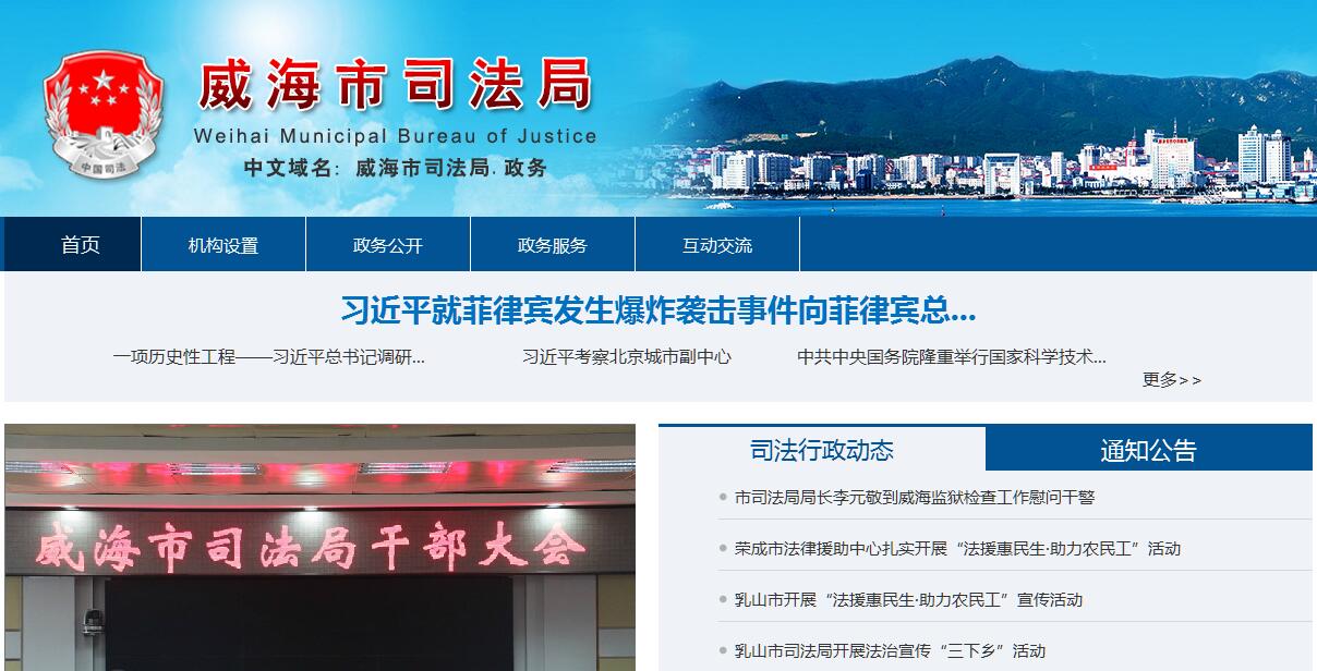 威海市司法局主要职责:(一)贯彻执行司法行政工作法律、法规和方针、政策,起草有关规范性文件草案,拟订全市司法行政工作规划、政策并组织实施。(二)负责管理威海监狱工作。(三)负责指导、监督管理全市社区矫正工作。(四)负责组织指导全市公共法律服务体系建设工作。(五)负责拟订全市法治宣传教育和全民普及法律常识规划并组织实施;指导依法治理工作和对外法治宣传。(六)负责指导监督全市律师工作并承担相应责任。(七)负责指导监督全市公证工作并承担相应责任。(八)负责指导监督全市司法所、社区司法行政工作室建设和人民调解、基层法律服务、安置帮教工作;参与社会治安综合治理工作;配合人民法院做好人民陪审员工作。(九)按规定承担国家司法考试有关工作。(十)负责指导监督全市司法鉴定工作并承担相应责任。(十一)监督管理全市法律援助工作。(十二)负责组织指导全市人民监督员选任管理工作。(十三)负责全市司法行政系统枪支、弹药、服装和警车等管理工作。(十四)负责指导全市司法行政系统的思想政治工作和队伍建设;负责全市司法行政系统警务管理和警务督察工作;按照干部管理权限,协管区市司法行政部门负责人。(十五)将安全生产法律、法规、规章纳入公民普法内容,指导律师、公证、基层法律服务等机构提供安全生产法律服务;负责监狱的安全生产监督管理。(十六)发挥职能作用和资源优势,为产业发展及招商引资(引智)促进提供高效便捷服务。(十七)承办市委、市政府交办的其他事项。