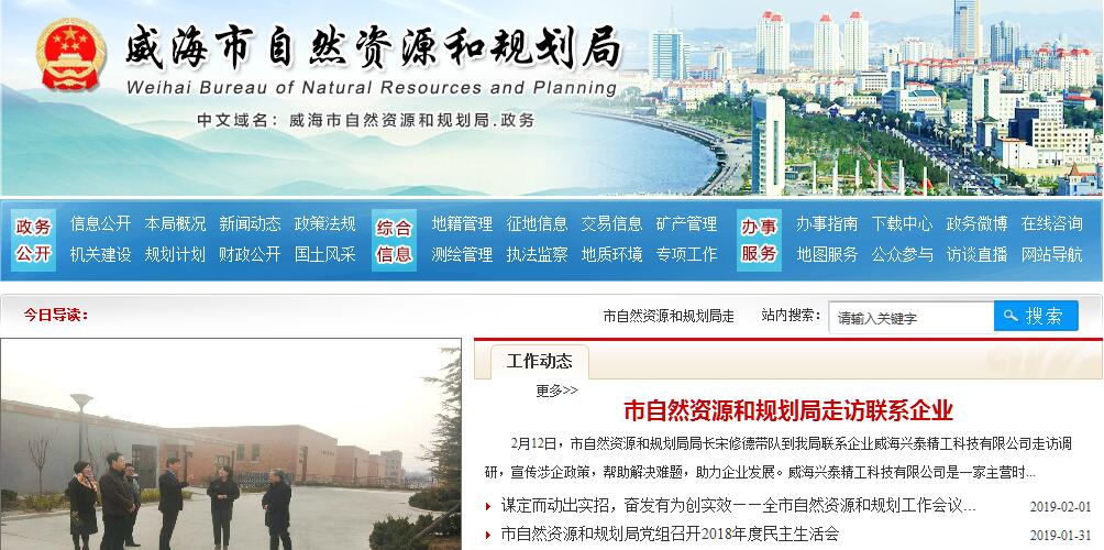 2018年12月30日,威海市自然资源和规划局正式挂牌成立,副市长周永迪出席揭牌仪式。仪式结束后,周永迪主持召开了新任领导班子见面会,并对下一步工作提出4点要求。根据我市机构改革方案,整合原市国土资源局、原市规划局的职责,以及市发展和改革委员会的组织编制主体功能区规划职责,市水利局的水资源调查和确权登记管理职责,市林业局的森林、湿地等资源调查和确权登记管理职责,市海洋与渔业局的编制海洋主体功能区规划、无居民海岛保护规划以及海域、海岛等资源调查和确权登记管理职责,相关部门的草地资源调查、确权登记职责,组建市自然资源和规划局,作为市政府工作部门。新组建的威海市自然资源和规划局主要负责:编制并监督实施全市主体功能区规划,建立空间规划体系;履行全民所有各类自然资源资产所有者职责,统一调查和确权登记,建立自然资源有偿使用制度,对全市自然资源开发利用和保护进行监管;负责测绘和地质勘查行业管理等。作为新组建的威海市自然资源和规划局,将以习近平新时代中国特色社会主义思想和党的十九大精神为指导,认真贯彻落实习近平总书记关于自然资源管理工作的系列指示批示精神,把自然资源和规划工作纳入到全市经济社会发展大局中谋划、部署和推进,切实践行“绿水青山就是金山银山”的生态文明理念,为努力开创自然资源管理工作新局面,扎实推进“精致城市·幸福威海”建设作出新的更大贡献。