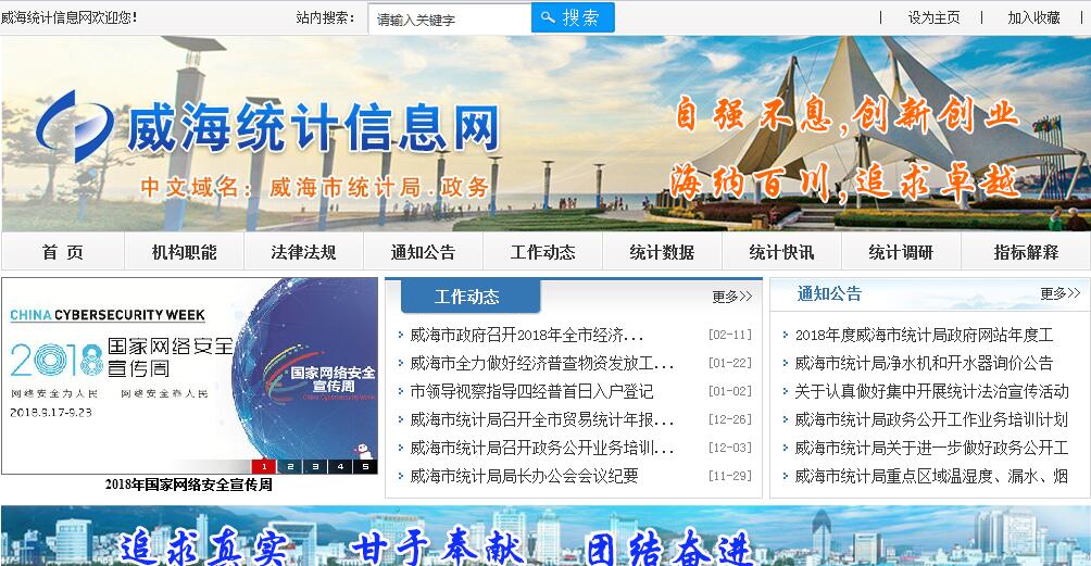 根据《中共威海市委、威海市人民政府关于威海市人民政府职能转变和机构改革的实施意见》(威发〔2014〕15号),设立威海市统计局,为市政府工作部门。其主要职责:(一)承担组织领导和协调全市统计工作,确保统计数据真实、准确、完整、及时的责任;贯彻执行统计工作法律、法规和方针、政策,起草有关规范性文件草案;拟订全市统计工作规划、政策、统计制度和统计标准并组织实施;依法监督涉外调查活动;依法实施统计执法检查并查处统计违法行为。(二)建立健全全市国民经济核算体系和统计指标体系;依法审批地方统计调查项目,审核统计计划、调查方案;建立健全统计数据质量审核、监控和评估制度,开展对重要统计数据的审核、监控和评估;指导部门统计工作。(三)根据国家重大国情国力普查计划、方案,拟订全市的实施方案,会同有关部门组织实施人口、经济、农业等重大国情国力普查;统一组织协调全市社会经济调查,汇总整理基本统计资料;对全市国民经济、社会发展、科技进步和资源环境等情况进行统计分析、统计预测和统计监督,向市委、市政府及有关部门提供统计信息和咨询建议。(四)统一核定、管理、公布全市性的基本统计资料,定期发布全市国民经济和社会发展情况的统计信息。(五)建立并管理全市统计信息自动化系统和统计数据库系统,指导各区市统计信息化系统建设。(六)协助管理各区市统计局局长、副局长;指导全市统计基层基础建设和统计队伍建设;监督管理各区市统计部门由中央、省级、市级财政提供的统计经费。(七)指导全市统计科学研究、干部培训等工作。(八)发挥职能作用和资源优势,为产业发展及招商引资(引智)促进提供高效便捷服务。(九)承办市委、市政府交办的其他事项。