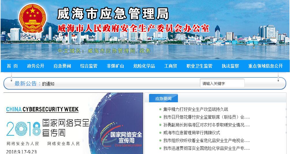 威海市应急管理局主要职责:(一)贯彻执行安全生产工作法律、法规和方针、政策,起草有关规范性文件草案;拟订全市安全生产政策和规划并组织实施;指导协调全市安全生产工作,负责安全生产大数据信息协调获取,分析和预测安全生产形势,发布安全生产信息,协调解决安全生产中的重大问题;指导建立完善全市安全生产风险管控和隐患排查治理双重预防机制。(二)承担全市安全生产综合监督管理责任,依法行使综合监督管理职权,指导协调、监督检查市政府有关部门、单位和各区市政府、国家级开发区管委安全生产工作;负责组织市政府安全生产大检查和专项督查;负责统计和通报安全生产情况;受市政府委托或授权,依法组织事故调查处理工作;监督检查事故防范和整改措施的落实情况;参与事故责任追究落实情况的监督检查;承担市政府安全生产委员会的日常工作。(三)承担非煤矿矿山、危险化学品行业安全生产监督管理责任,负责冶金、有色、建材、机械、轻工、纺织、烟草、商贸等行业的安全生产监督检查;按照分级、属地原则,依法监督检查工矿商贸生产经营单位贯彻执行安全生产法律法规情况及其安全生产条件和有关设备(特种设备除外)、材料、劳动防护用品的配备等安全生产保障情况。(四)承担全市非煤矿矿山企业和危险化学品、烟花爆竹生产经营企业安全生产准入管理责任,依法组织并指导监督实施安全生产准入制度;负责危险化学品安全监督管理综合工作和烟花爆竹安全生产监督管理工作。(五)承担工矿商贸作业场所(煤矿作业场所除外)职业卫生监督检查职责;组织实施职业卫生标准中的用人单位(不含煤矿)职业危害因素工程控制、职业防护设施、个体职业防护等相关标准;组织查处职业危害事故和违法违规行为。(六)组织实施工矿商贸行业安全生产地方标准和规程;监督检查重大危险源监控和重大事故隐患排查治理工作,依法查处不具备安全生产条件的工矿商贸生产经营单位。(七)负责指导协调全市安全生产应急救援工作;指导协调和监督全市安全生产行政执法工作;综合管理全市生产安全伤亡事故和安全生产行政执法统计分析工作。(八)负责监督检查职责范围内新建、改建、扩建工程项目(煤矿除外)的安全设施、职业卫生设施与主体工程同时设计、同时施工、同时投产使用情况。(九)组织指导全市安全生产宣传教育工作;负责全市安全生产知识和能力考核工作;监督检查工矿商贸生产经营单位(煤矿除外)安全生产和职业卫生培训工作。(十)指导协调全市安全生产检测检验工作,监督安全生产社会中介机构和安全评价工作。(十一)组织实施安全生产科技规划,指导协调全市安全生产信息化建设、安全生产重大科学技术研究和推广工作;组织开展安全生产方面的交流与合作。(十二)发挥职能作用和资源优势,为产业发展及招商引资(引智)促进提供高效便捷服务。(十三)承办市委、市政府交办的其他事项。