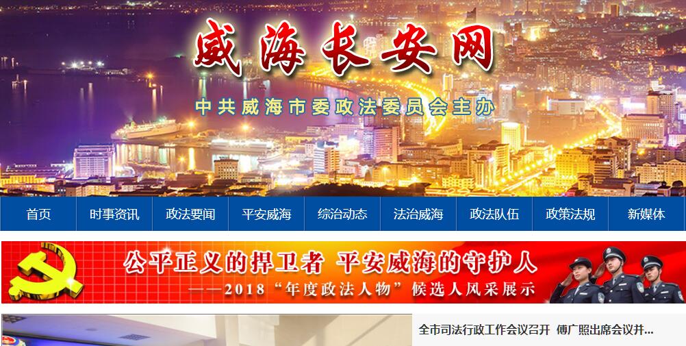 | 网站简介: 威海长安网由中共威海市委政法委员会主办。威海长安网是一个以宣传为导向,以全面促进政法综治和社会管理创新工作为目的的网络平台。旨在加强威海政法综治和社会管理创新工作的网上宣传和舆论引导,提高人民群众对平安建设重要性的认识,引导大众积极参与社会管理综合治理工作,深入推进政法队伍的建设。 |