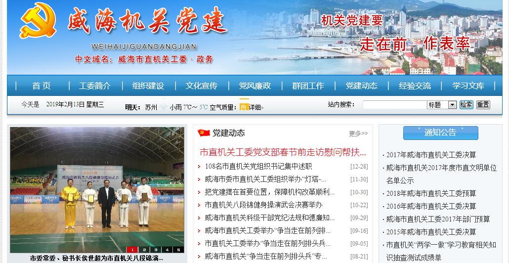 威海市委市直机关工作委员会(简称市直机关工委),成立于1987年,为威海市委的派出机构。根据中共山东省委批准的《中共威海市委机构改革方案》(鲁威[2000]278号)和《中共威海市委机构改革实施意见》(威发[2000]16号)规定,中共威海市委市直机关工委内部机构设办公室、组织科、宣传科3个职能科室和纪工委、工会工委、团工委3个职能机构。其主要职责:(一)领导市直机关党的工作,负责制订市直机关党的建设规划,对市直机关以及部分事业单位和企业单位党的工作实施领导,对各市区机关工委的工作进行指导。(二)指导市直机关各级党组织和广大党员干部,学习马列主义、毛泽东思想、邓小平理论和“三个代表”重要思想,深入学习实践科学发展观。(三)指导市直机关各级党组织加强党的组织建设,考察审批直属机关党组织的设置和班子的组成,做好党员发展、教育和管理工作,做好机关党务干部的政治、业务培训工作。(四)指导市直机关党组织加强党风廉政建设,协助市委有关部门抓好市直机关各部门领导班子的思想作风建设;发挥机关党组织的监督职能,指导机关党组织实施对党员特别是党员领导干部的监督;指导各部门党员领导干部的民主生活会。定期了解市直机关各部门党员和群众对部门领导干部的意见,及时向市委反映各部门领导班子和领导干部的情况;经常深入基层和企业了解机关干部在工作作风、服务质量、廉政建设等方面存在的问题,及时向市委进行反映。(五)指导市直机关各级党组织做好党员群众的思想政治工作,抓好机关的精神文明建设。(六)领导市直机关纪律检查工作委员会的工作,审理市直机关处级党员干部违犯党纪问题,审批科级及以下党员干部违犯党纪的处理决定。(七)领导市直机关工会工作委员会、共青团工作委员会和机关妇女工作,发挥群团组织的桥梁和纽带作用。(八)完成市委交办的其他工作任务。