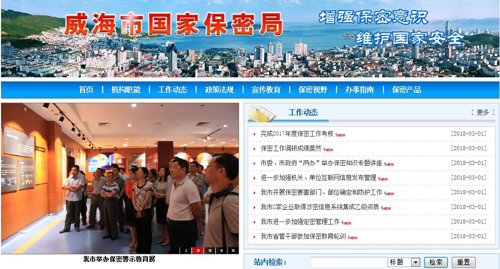 | 网站简介: 威海市委保密委员会办公室(市政府保密局)工作职责:一、承担市委保密委员会的日常工作;二、贯彻执行党委和政府保密工作的方针政策,监督检查《保密法》及其它保密法规的实施,指导、协调全市保密工作;三、拟定本地区保密规章制度,组织开展保密宣传教育和保密检查,组织查处失泄密事件;四、负责全市计算机信息系统的保密工作,审批涉密信息系统规划、建设和使用;五、负责对外提供秘密资料的监督审核和出境审查办证工作,审批国家秘密载体定点复制单位;六、协助上级保密部门办理本地区军工科研生产单位的保密资质认证审批工作;七、负责市专项工作考核中信息安全考核工作;八、负责保密电话专网站的业务管理工作;九、负责组织实施市直机关信息化建设规划方案,协调、指导全市党委办公室系统办公自动化工作。 |