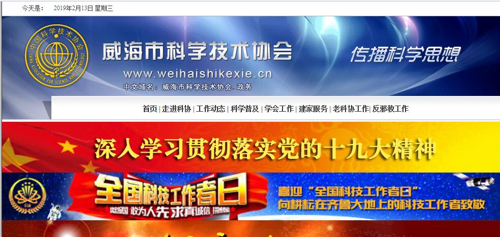 威海市科学技术协会(简称威海市科协)是威海市科学技术工作者的群众组织,是中国共产党威海市委员会领导下的人民团体,是党和政府联系科学技术工作者的桥梁和纽带,是推动科学技术事业发展的重要力量。威海市科学技术协会是山东省科学技术协会的地方组织,接受山东省科学技术协会的业务指导。威海市科协的宗旨是:以马克思列宁主义、毛泽东思想、邓小平理论和“三个代表”重要思想为指导,团结和动员全市科学技术工作者,以经济建设为中心,坚持科学技术是第一生产力的思想,实施科教兴威和可持续发展战略,促进科学技术的繁荣和发展,促进科学技术的普及和推广,促进科学技术人才的成长和提高,促进科学技术与经济的结合,为社会主义物质文明和精神文明建设服务;反映科学技术工作者的意见,维护科学技术工作者的合法权益,为科学技术工作者服务。威海市科协的主要任务是开展学术交流,活跃学术思想,促进学科发展。组织开展群众性、社会性、经常性科普活动,弘扬科学精神,普及科学知识,传播科学思想和科学方法;捍卫科学尊严,反对邪教、伪科学和愚昧迷信;推广先进技术,开展青少年科技教育活动,提高全民族科学文化素质。反映科技工作者的意见和要求,维护科技工作者的合法权益,努力为科技工作者服务;组织科技工作者参与科学技术政策、法规制定和社会事务的政治协商、科学决策、民主监督工作,为党委和政府的全局工作服务。表彰奖励优秀科技工作者和科协工作先进集体、先进个人,举荐人才。开展科学论证、咨询服务,提出政策建议;促进科技成果的转化,接受委托承担项目评估、成果鉴定、专业技术职务资格评审等工作。开展民间国际科学技术交流活动,发展同国外及香港、澳门和台湾地区科学技术团体、科学技术工作者的友好交往。开展继续教育和培训工作。举办符合威海市科学技术协会宗旨的社会公益性事业。