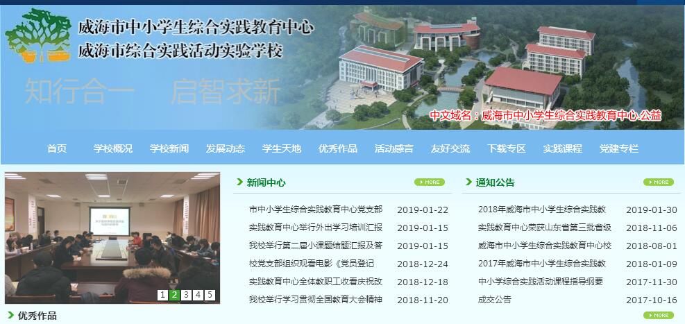 威海市中小学生综合实践教育中心是威海市教育局直属单位,是全国首批示范性综合实践基地项目,2013年威海市十大惠民工程之一。学校位于威海市临港经济技术开发区汪疃镇许家屯村北,背靠半壁山,紧邻威石路,依山傍水,教学环境优雅,专业设备精良。一期工程占地152亩,投资1.5亿元,建筑面积25000平方米,已建成综合实践楼(9000㎡)、一号主题馆(5000㎡)、餐厅、学术报告厅(餐厅和学术报告厅为一体,上下两层3000㎡)、学生宿舍楼(分男女宿舍楼,共两栋8000㎡),按能同时容纳1500名学生、30个教学班的规模设计,一期工程已竣工。二期工程占地280亩,投资9000万元,建设二号主题馆、科技生态园、室外拓展场地等。威海市中小学生综合实践教育中心以创办全省领先、全国一流的实践基地为目标,以补充延伸学校教育,发掘学生潜能,发展学生的实践能力和创新精神为办学理念,以“锲而不舍、厚积薄发、开拓创新、争创一流”的基地精神,开展生存体验、素质拓展、科学实践、专题教育四大板块实践活动,促进中小学生德、智、体、美在实践活动中相互渗透,促进学生健康成长。通过开展各种实践活动,使学生形成对自身、自然和社会的整体认识,养成积极负责的生活态度,培养合作意识和沟通能力,发展创新意识和创新能力,形成对社会的责任心和使命感,学会做人、学会做事、学会生存、学会探究、学会创造。学校围绕实施素质教育,以培养学生的创新精神和实践能力为核心,逐步形成了六大课程板块:以消防教育、地震教育、应急救护等课程为主的生命安全教育系列;以穿越生死线、攀岩、逃生墙等课程为主的素质拓展教育系列;以科学自由行、科普教育、机器人组装与编程等课程为主的科学实践教育系列;以陶艺、电烙画、脸谱等课程为主的文化创意教育系列;以木工、金工、农作物栽培等课程为主的劳动技术教育系列;以重走长征路、模拟射击、军事障碍赛等课程为主的国防教育系列等六大课程板块,逐步构建完成了我中心的实践课程体系。威海市中小学生综合实践教育中心作为中小学生进行实践教育的“大本营”,在学校与社会之间搭建了一个良性互动平台。学生在这里通过开展各种实践教育活动,可以形成对自身、自然和社会的整体认知,养成良好的行为习惯,提升自身的整体素质,从而有效地促进学校教育向校外延伸,社会实践向校内拓展。