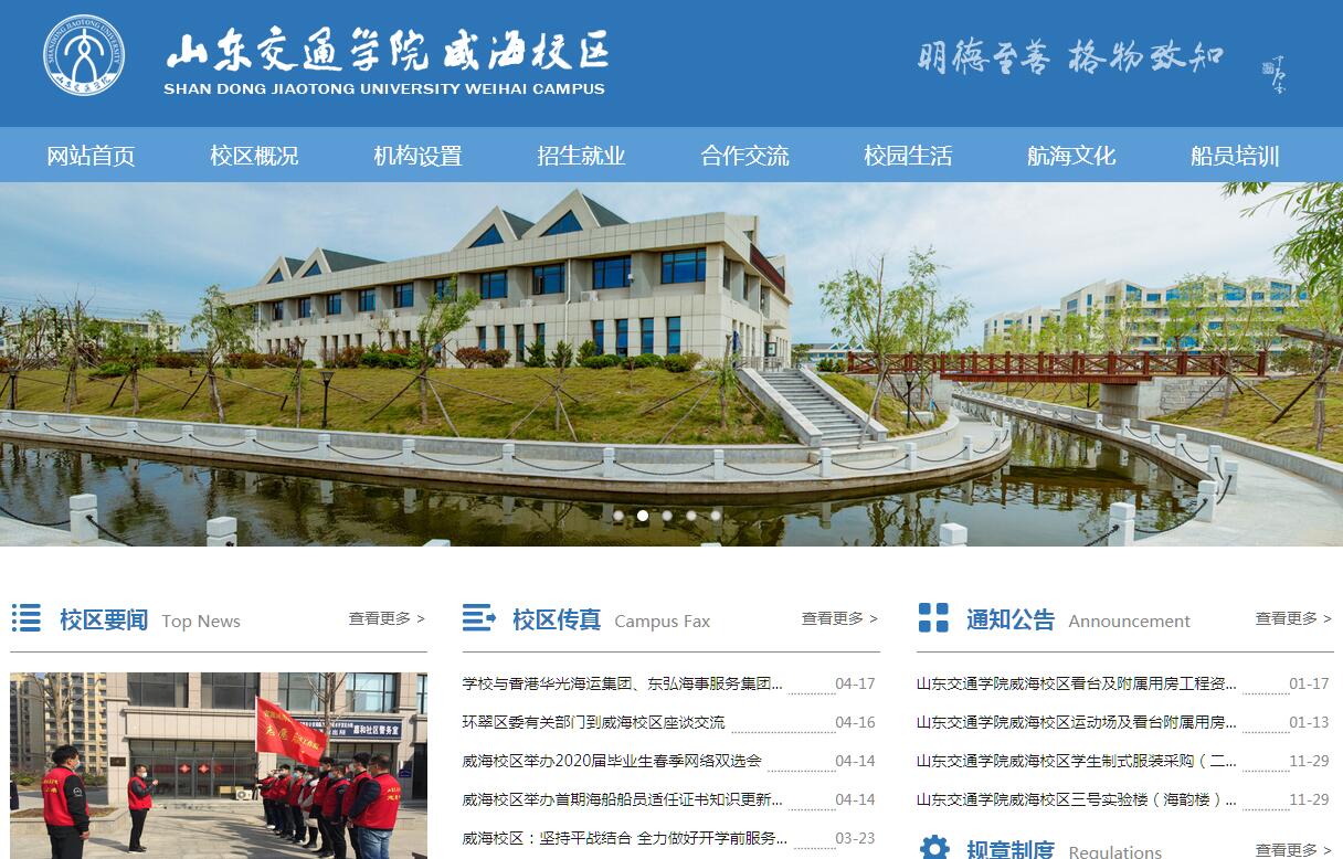 山东交通学院始建于1956年,是一所以培养“路、海、空、轨”综合交通专业人才为主体的普通本科高校。2011年,经国务院学位委员会批准为培养硕士专业学位研究生试点工作单位。2013年,获批为山东省高等教育应用型人才培养特色名校立项建设单位,是教育部应用技术大学改革试点战略研究单位。学校是“全国高校毕业生就业50强”典型经验高校。学校占地面积3200余亩,分为长清校区、无影山校区、威海校区、东校区4个校区办学。现设有17个二级学院、55个本科专业和2个工程硕士专业学位领域,专业设置以工科为主。现有全日制在校学生22877人,在职教职工1483人。山东交通学院威海校区始建于1965年,坐落于最适合人类居住的城市——威海市。新校区2016年8月正式启用,由山东省教育厅、山东省交通运输厅和威海市政府联合共建,占地1000余亩,规划学生数10000人,是以培养涉海类和涉外类专业人才为重点的大学校区。校区办学条件好,专业特色鲜明。现有教职工200余人,持有无限航区船长、轮机长适任证书的“双师型”教师占60%以上。设有3个学院和1个基础教学部,15个本专科专业和5个硕士培养方向,其中,船舶与海洋工程专业为省级特色专业,船舶与海洋工程、航海技术专业为省级特色名校财政支持建设专业,载运工具运用工程、交通运输规划与管理为山东省“十二五”重点学科。建有30多个大型重点专业实验室,其中,船舶与海洋运输实验室为山东省“十二五”高等学校科研创新平台建设工程重点实验室。校区国际化程度高。与美国密歇根大学、英国朴茨茅斯大学、英国南安普顿索伦特大学、瑞典林奈大学卡尔马校区、德国不莱梅哈芬应用技术大学、缅甸海事大学、韩国又松大学等建有合作关系,互设分校区,实现学分互认、教师互访和联合培养。校区产学研能力强。依托威海市双岛湾科技城区位优势,服务国家“一带一路”战略、山东半岛蓝色经济区战略和中韩自贸区、中澳自贸区建设,设有山东内河航运研究中心、山东运河经济文化研究中心基地、威海市临港危化品智能监测工程技术中心和现代商务双创实训室、邮轮人才培训中心等多个产学研平台及威海最高水平的水上运动中心。拥有交通运输企业安全生产标准化二、三级考评资质。1999年,按照国际海事组织(IMO)《STCW公约》建立运行了《船员教育和培训质量管理体系》并取得国家海事局认证,拥有20余个船员培训资质,是山东省中、高级船员培训基地。校区校企合作领域广。与上海泰华船舶管理有限公司、宜昌船舶柴油机股份有限公司、QST青软实训和北京正益移动互联科技股份有限公司等单位签订联合办学协议,设立实习实训基地,提高学生认知实习和实操技能。与世界500强的中国远洋运输集团、中国远洋海运集团等百余家用人单位建有稳定的人才供需协作关系,毕业生供需比连续10余年保持在1:2.5以上,就业率100%。校区学生资助体系完善。设有国家奖学金、国家励志奖学金、省政府奖学金、省政府励志奖学金、校长奖学金等10余项奖学金,对品学兼优的学生给予奖励,拥有完善的国家助学贷款、困难补助和绿色通道、勤工助学制度,帮助家庭经济困难的学生完成学业。作为山东交通学院的大学校区之一,威海校区秉承“明德至善 格物致知”的校训,发扬“严 尊 勤 全”的优良校风,弘扬“爱校 敬业 务实 创新”的“交院人精神”,发挥省内外涉海类交通人才和涉外类商科人才培养重要基地作用,为经济社会发展做出积极贡献。
