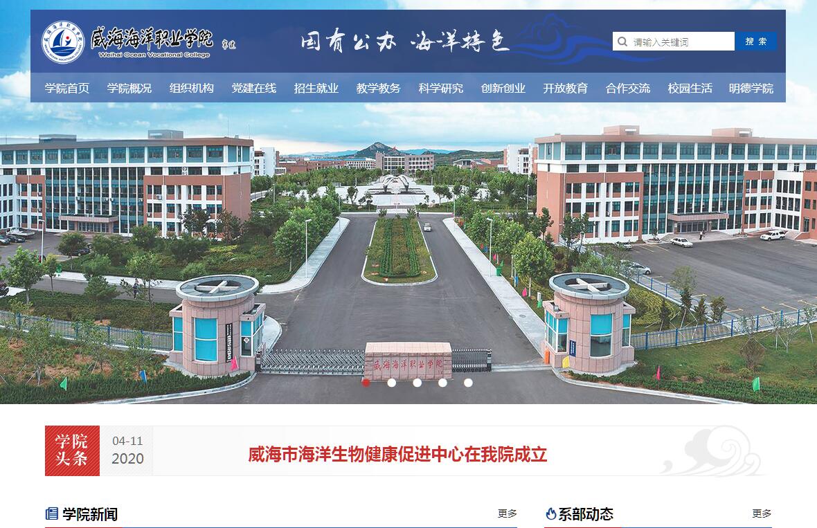 威海海洋职业学院坐落于美丽的海滨之城——威海,占地588亩,建筑面积24万平方米,基建投资9亿元,教学仪器设备总值1.1亿元,是一所经山东省人民政府批准、国家教育部备案的国有公办全日制普通高等专科学校。目前设立教学系部7个,教辅机构3个,行政处室6个,高职在校生7100多人,教职工400余人。学院以习近平新时代中国特色社会主义思想为指导,深入贯彻落实党的十九大精神,紧紧围绕山东省新旧动能转换重大工程和半岛蓝色经济区发展的要求,以“办人民满意的教育”为目标,以提升学生核心素养为根本,以推进依法治校为手段,全面实施“质量立校、人才强校、特色兴校、开放活校”四大发展战略,稳步向建设优质高职院校目标迈进。专业贴近需求,海洋特色鲜明。根据区域产业发展需求,重点打造海洋生物、船舶工程、机电工程、信息工程和经济管理五大专业群,目前开设了水产养殖技术、食品营养与检测、船舶工程技术、工业机器人、会计、港口物流管理、电子商务、物联网应用技术、云计算技术与应用、药品生物技术、智能控制技术、国际邮轮乘务管理、轮机工程技术和食品药品监督管理等25个专业。搭建成长平台,推进“名师工程”。实施教师成长工程,制定了新入职教师、青年教师、骨干教师、专业带头人、专家5个阶段“阶梯式”发展标准,搭建了教师专业成长平台,打造一支师德高尚、业务精湛、结构合理、数量充足的“双师型”教师队伍。实施“名师工程”,山东省教学名师等一批有突出贡献的中青年专家和优秀人才担任专业带头人,获批建设2个省级名师工作室,通过名师引领提升师资队伍整体专业水平。设施设备先进,办学条件一流。设有航海模拟实训室、轮机模拟实训室、大学生电子商务创业基地、微藻饵料藻种培养实训室等专业实训室89个,图书馆纸质图书、电子图书40余万册,体育馆、报告厅设施设备配备齐全,功能先进,为学生丰富知识、增长见识、锻炼体魄搭建了平台。打造科研平台,增强服务能力。建有“山东省船舶控制工程与智能系统工程技术研究中心”等5个省、市级工程技术研究中心和2个市级创新平台,加快推进各种专利、项目研究,促进科研成果的转移转化。实施学历教育和非学历教育并举,对全市各类专业技术人员提供继续教育网络在线培训服务,积极发挥作为“山东省海洋与渔业实用人才培训基地”、“威海市技能鉴定所”等培训基地和鉴定机构的职能,开展各类实用人才培训和技能鉴定。狠抓质量工程,加快信息化建设。全力推进质量保障体系建设,完善学校、专业、课程、教师、学生不同层面的质量保证机制,实施全面、全员、全过程质量管理。加强文献信息资源基础建设、精品共享课程资源库建设、虚拟仿真实训平台建设,成立“山东省移动云教学大数据研究中心”,利用好蓝墨云班课等数据平台,拓展网络学习空间应用的广度与深度,构建网络化、数字化、个性化、终身化的学习体系。重视创新创业,夯实就业保障。与椅子网合作创建了教学、就业、创业为一体的教育空间,全面提升学生的职场素养。建有“大学生创新创业孵化基地”和“就业与创新创业指导中心”,将创新创业教育贯穿于教育教学的始终。建立党政重视就业、专业导向就业、教学面向就业、机制支撑就业、教师引导就业、学生立足就业、部门专司就业的齐抓共管的就业保障运行机制,2017年首届毕业生就业率达到99.6%,为区域经济发展提供强力人才支撑。坚持文化育人,提升学生素养。成立“明德学院”,下设德雅学馆、敦行学苑、朝舞学社三个板块,开设茶艺、书法、围棋、古筝、太极、瑜伽等55门通识课程,通过传统文化熏陶、职业发展规划、社团活动开展等,培养学生的人文情怀、拼搏精神、团队意识、领导能力、社交能力、表达能力、学习能力、全球视野和社会责任感,帮助学生找到适合自我发展的方向和兴趣,为人生的长跑提供源源不断的动力和能量。校政企多方联动,产学研深度融合。成立由学院、政府、园区和产业龙头企业共同组成的理事会,构建“合作办学、合作育人、合作就业、合作发展”的新机制;与南京第55所技术开发有限公司、新迈尔(北京)科技有限公司等实行现代学徒制人才培养;与华鹏玻璃、成山集团、京东集团等合作建立“订单班”,实行校企双主体育人;与山东省渔业技术推广站等合作共建实验实训室,与百步亭船业有限公司合作建造“海院号”综合实训船;与威高集团、迪沙药业等100多家骨干企业进行深入的校企合作。注重对外交流,加强境内外合作。与威海联桥国际、威海国际合作等公司建立对外开放合作伙伴关系,加强与日本高校和产业的合作力度;与台湾大仁科技大学,韩国庆尚大学、金泉大学、中源大学,墨西哥自治大学海洋研究中心、国立梅里达大学达成合作意向,围绕人才培养、师资交流与教学科研开展境内外交流与合作。加强党建引领,坚定不移推进全面从严治党。牢固树立抓好党建是最大政绩的理念,认真贯彻落实中央关于全面从严治党的部署要求,把管党治党与办学治校、改革发展、安全稳定等中心工作同部署、同落实、同考核。层层签定党风廉政建设责任书,扎实开展廉政风险防范管理。增强思政工作的责任感和使命感,着力构筑具有凝聚力和引领力的社会主义意识形态