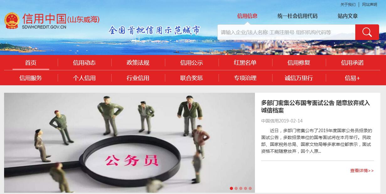 | 网站域名: | www.sdwhcredit.gov.cn | ||