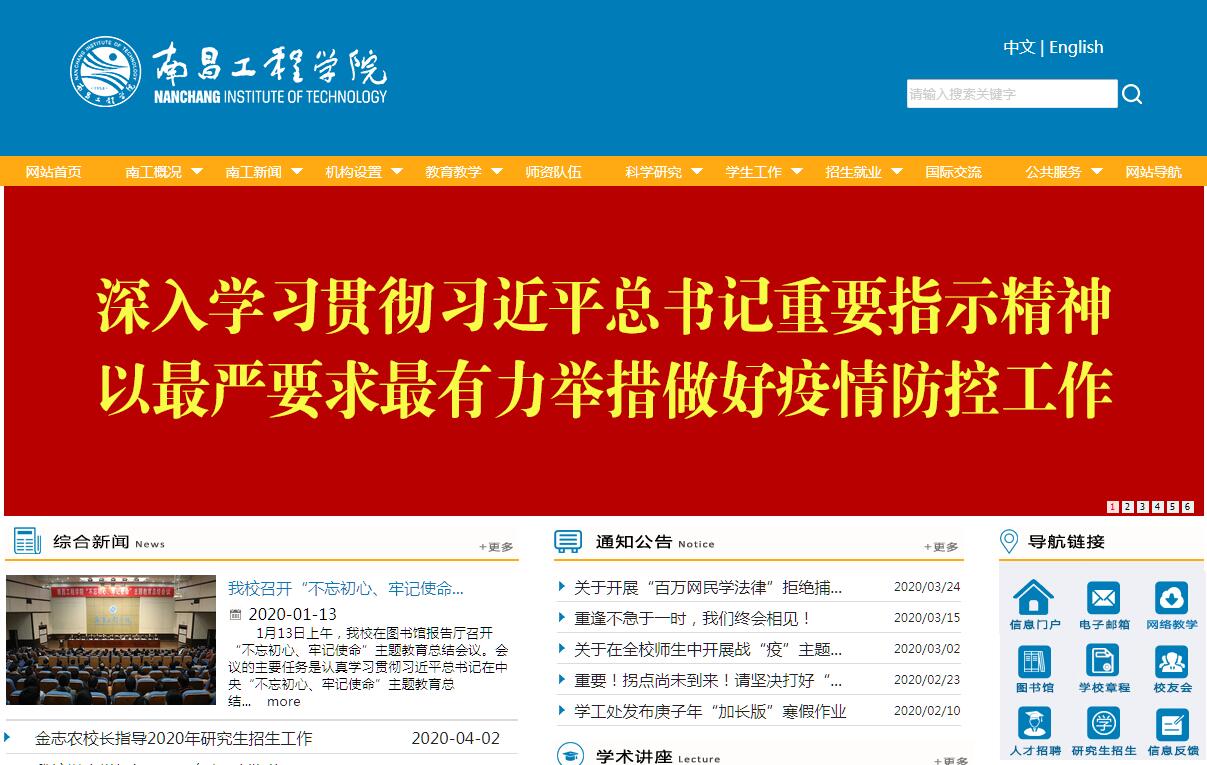 南昌工程学院是一所以工学为主,管理学、理学、农学、文学、经济学、艺术学等多学科协调发展,水利特色鲜明的工程类本科高校,前身为1958年创建的江西水利电力学院,2004年更为现名。2005年被批准为学士学位授予单位,2008年成为江西省人民政府与水利部共建高校。2011年先后被批准为“卓越工程师教育培养计划”高校和硕士专业学位研究生培养试点高校,并顺利通过教育部本科教学工作合格评估。2013年被总参谋部、教育部批准为定向培养直招士官试点院校,2016年通过教育部本科教学工作审核评估,2017年被授予第一届“江西省文明校园”荣誉称号,同年被列入江西省一流学科建设名单,根据国务院学位委员会办公室2017年学位授权审核结果,我校成功获批新增硕士学位授予单位。学校坐落于历史文化名城,“军旗升起的地方”——江西省省会南昌市。学校拥有瑶湖和彭家桥两个校区,占地面积2046.9亩,校舍建筑面积65万余平方米,拥有教学科研仪器设备总值2.23亿元。馆藏中文纸质图书132.99万册(电子图书150万册),外文纸质图书1.54万册(电子图书50.36万册),期(报)刊1418种,各类中外文数据库24个,校园无线网络全覆盖。学校现有教职工1454人,其中专任教师1050人。专任教师中,具有高级职称452人,占43.05%;博、硕士学位860人,占81.90%。拥有国家“新世纪百千万人才工程”人选1人,国家有突出贡献的中青年专家1人,享受国务院特殊津贴专家4人,二级教授 8人,江西省“赣鄱英才555人才工程”人选、省政府特殊津贴专家、省主要学科学术和技术带头人等省级人才77人。聘请2位诺贝尔奖得主为学校名誉教授,柔性引进长江学者、千人计划学者、国家杰青等杰出人才9人。学校设有水利与生态工程学院、土木与建筑工程学院、机械与电气工程学院、信息工程学院、工商管理学院、经济贸易学院、人文与艺术学院、理学院、外国语学院、国际教育学院、马克思主义学院、体育教学部、士官学院、瑶湖学院和继续教育学院等15个教学院(部),现有全日制在校生17386人,开设53个本科专业,在两个领域招收工程硕士专业学位研究生。本科专业中,有国家特色专业1个、教育部“卓越计划”专业6个(教育部“卓越工程师计划”专业4个、教育部“卓越农林计划”专业2个)、省级特色专业7个、省级“卓越计划”专业6个(省“卓越工程师计划”专业5个、省“卓越农林计划”专业1个)、国际合作教育专业2个、一本批次招生专业4个。学校现有省优势科技创新团队、省高校科研创新团队各1个。拥有各级各类科研平台28个,其中国家级平台3个、省级科研平台12个。近年来先后承担国家级项目143项、省部级项目1158项,累计科研经费28306.63万元;获专利和软件著作权424项;发表学术论文3115篇,其中SCI/EI检索论文377篇;获省政府科技奖6项、省高校科技成果奖5项、省社会科学优秀成果奖19项。承办首届国际水土保持青年论坛、第三届全球森林生态经济论坛等大型国际学术会议。学校是我国城市水土保持技术首创单位之一,承担水利部公益项目3项。水环境生态监测、河道污水治理、智能光纤技术等科技成果应用推广,社会服务经费达到6457.55万元。学校坚持应用型人才培养目标,狠抓教育教学质量,强化优良学风养成,人才培养质量较高。本科毕业生就业率连续九年超过全省平均水平,毕业研究生获取执业证书比例超过50%、就业率100%。近五年学生荣获全国“挑战杯”课外学术科技作品竞赛一等奖、“创青春”创业计划大赛金奖等国家级奖励376项。学校秉承“自强不息、格物致知”的校训,坚持“围绕水科学、打造应用型”的办学理念,弘扬“开拓、勤奋、求实、文明”的校风,面向地方和水利行业培养了10余万高素质应用型人才,为经济社会和水利行业发展做出了积极贡献,赢得良好的社会声誉。