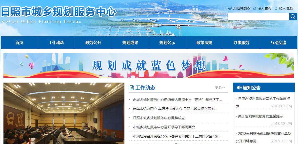 2018年12月27日,日照市城乡规划服务中心举行揭牌仪式。市政府副市长李峰出席并讲话,市政府副秘书长宋君主持揭牌仪式。新组建的市城乡规划服务中心,将原市规划局下属的6个事业单位进行了重新整合优化。此次揭牌成立,标志着我市城乡规划事业揭开新的一页,有利于进一步提升全市城乡规划服务水平,科学引导城市建设发展,积极助推日照高质量发展、加快建设现代化海滨城市。其主要职责:(一)贯彻执行国家、省有关城乡规划的方针政策、法律法规;负责拟订全市城乡规划管理的规范性文件并组织实施。(二)负责日照市城市总体规划、城镇体系规划、近期建设规划、控制性详细规划的组织编制、审查报批、实施管理工作。(三)会同有关部门组织编制专业、专项规划,负责编制成果的规划审查工作。(四)指导各县城乡规划工作,审查和报批各县城总体规划并监督实施;负责城市规划区内村镇规划的审查报批工作。(五)负责城市规划区内城市国有土地使用权出让转让的规划管理工作,提出出让转让地块的规划条件及附图;负责城市地下空间开发利用规划管理工作。(六)负责建设项目选址定点和建设用地规划管理;负责建筑工程、市政工程规划管理,核发《建设项目选址意见书》、《建设用地规划许可证》、《建设工程规划许可证》、《乡村建设规划许可证》、《临时建设用地规划许可证》、《临时建设工程规划许可证》。(七)负责城市规划区各项规划实施情况的监督检查及规划批后管理工作,核发《建设工程竣工规划验收合格证》;负责违法建设的认定。(八)参与全市国民经济和社会发展计划、土地利用总体规划及年度计划编制工作。(九)负责全市规划设计单位资质管理和规划市场管理工作;组织重要规划项目和建筑方案的招标和评审工作;负责全市规划工作人员的专业培训和城乡规划学术及信息交流工作;组织开展城乡规划科学研究和技术开发。(十)承担市城市规划委员会的日常工作。(十一)承办市委、市政府交办的其它事项。