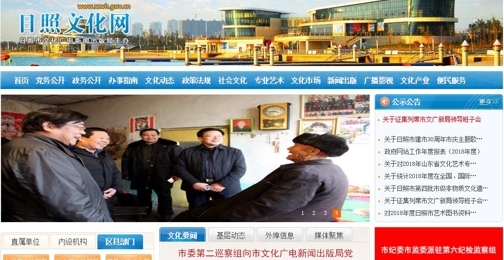 | 网站简介: 日照市文化和旅游局,是依据《日照市机构改革方案》组建的新部门,为日照市人民政府工作部门。2018年12月27日,日照市委、市政府举行市文化和旅游局(市新闻出版广电局、市文物局)揭牌仪式。市委常委、宣传部部长高杰,市政府副市长林彦芹为市文化和旅游局(市新闻出版广电局、市文物局)揭牌,市政府办公室副主任陈常永主持揭牌仪式。市文化和旅游局的组建标志着日照市文化和旅游迈出了深度融合的步伐。新组建的市文化和旅游局,整合市文化广电新闻出版局、市旅游发展委员会的职责,作为市政府工作部门,加挂市新闻出版广电局、市文物局牌子。主要负责统筹规划文化事业、文化产业、旅游业、文物保护事业发展,统筹规划和指导协调新闻出版、广播电影电视事业及产业发展,推进文化产业、旅游业与相关产业融合发展等。 |