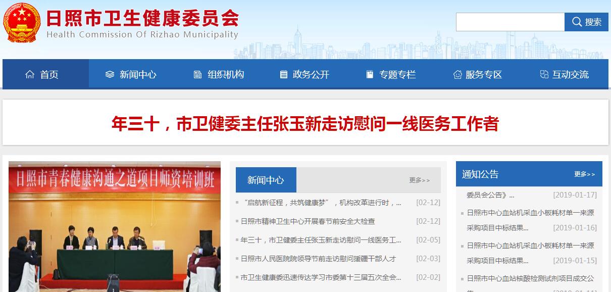 日照市卫生健康委员会主要职责:(一)贯彻执行国家和省关于卫生和计划生育、中医药事业发展的法律、法规、规章、技术规范、标准;拟订全市卫生和计划生育、中医药事业发展的相关规划、政策措施并监督实施;参与医药卫生体制改革;负责协调推进全市医疗保障,统筹规划全市卫生和计划生育服务资源配置,拟订区域卫生和计划生育规划并组织实施。负责全市卫生和计划生育统计与信息工作。(二)负责疾病预防控制工作,制定全市疾病预防控制规划、免疫规划、严重危害人民健康的公共卫生问题的干预措施并组织实施,协调有关部门对重大疾病实施综合防控与干预,制定全市卫生应急和紧急医学救援预案、突发公共卫生事件监测和风险评估计划,组织和指导全市突发公共卫生事件预防控制和各类突发公共事件的医疗卫生救援,依法报告传染病疫情信息、突发公共卫生事件应急处置信息。(三)负责监督实施职责范围内的职业卫生、放射卫生、环境卫生、学校卫生、公共场所卫生、饮用水卫生管理规范和标准,制定相关政策措施,组织开展相关监测、调查、评估和监督,负责传染病防治和国内交通卫生检疫监督管理工作。组织开展食品安全风险监测、评估。(四)负责组织拟订并实施全市基层卫生和计划生育服务、妇幼卫生发展规划和政策措施,指导基层卫生和计划生育、妇幼卫生服务体系建设,推进基本公共卫生和计划生育服务均等化,完善基层运行新机制和乡村医生管理制度。(五)贯彻落实省医疗机构和医疗服务全行业管理办法并监督实施,组织实施医疗机构及其医疗服务、医疗技术、医疗质量、医疗安全以及采供血机构管理等有关规范、政策和标准,会同有关部门贯彻执行国家、省卫生专业技术人员准入、资格标准,组织实施卫生专业技术人员执业规则和服务规范,建立医疗机构医疗服务评价和监督管理体系。(六)推进全市公立医院改革,建立公益性为导向的绩效考核和评价运行机制,建设和谐医患关系,提出基本医疗服务价格政策的建议。(七)组织实施国家药物政策、国家基本药物制度、国家基本药物目录及山东省药品增补目录,执行国家和省基本药物采购、配送、使用的管理制度,拟订全市有关政策措施。会同有关部门提出基本药物目录内药品生产的鼓励扶持政策,提出基本药物价格政策的建议。(八)贯彻落实国家、省生育政策,组织实施促进出生人口性别平衡的政策措施,组织监测计划生育发展动态,提出发布计划生育安全预警预报信息建议。建立计划生育技术服务管理制度并监督实施。依法规范计划生育药具管理工作。制定优生优育和提高人口素质的政策措施并组织实施,推动实施计划生育生殖健康促进计划,降低出生缺陷人口数量。(九)组织推进计划生育利益导向和促进计划生育家庭发展机制,组织实施国家、省计划生育奖励扶助、计划生育特殊困难家庭扶助等制度,负责协调推进有关部门、群众团体履行计划生育工作相关职责,建立与经济社会发展政策的衔接机制,提出稳定低生育水平的政策措施。(十)制定流动人口计划生育服务管理制度并组织落实,推动建立流动人口卫生和计划生育信息共享和公共服务工作机制。(十一)组织拟订全市卫生和计划生育人才发展规划,指导卫生和计划生育人才队伍建设,加强全科医生等急需紧缺专业人才培养,建立完善住院医师和专科医师规范化培训制度并组织实施。(十二)组织拟订全市卫生和计划生育科技发展规划,组织实施卫生和计划生育相关科研攻关项目。参与拟订医学教育发展规划,协同指导院校医学教育和计划生育教育,组织开展毕业后医学教育和继续医学教育工作。(十三)指导全市卫生和计划生育工作,完善综合监督执法体系,规范执法行为,监督检查法律法规和政策措施的落实,组织查处重大违法行为。监督落实计划生育目标管理责任制和计划生育一票否决制。(十四)负责卫生和计划生育宣传、健康教育、健康促进和信息化建设等工作,依法组织实施统计调查,参与全市人口基础信息库建设。组织开展对外援助和国际交流合作,开展与港澳台的交流合作。(十五)负责全市中医药工作,拟订全市中医药中长期发展规划和政策并组织实施;继承和发展中医药文化,促进中药资源的保护、研究开发和合理利用。(十六)拟订全市保健工作规划、政策并组织实施;负责市保健委员会确定的保健对象的医疗保健工作;承担重要会议和重大活动的医疗卫生保障工作。(十七)承担市爱国卫生运动委员会、市人口和计划生育领导小组的日常工作。(十八)承办市委、市政府交办的其他事项。