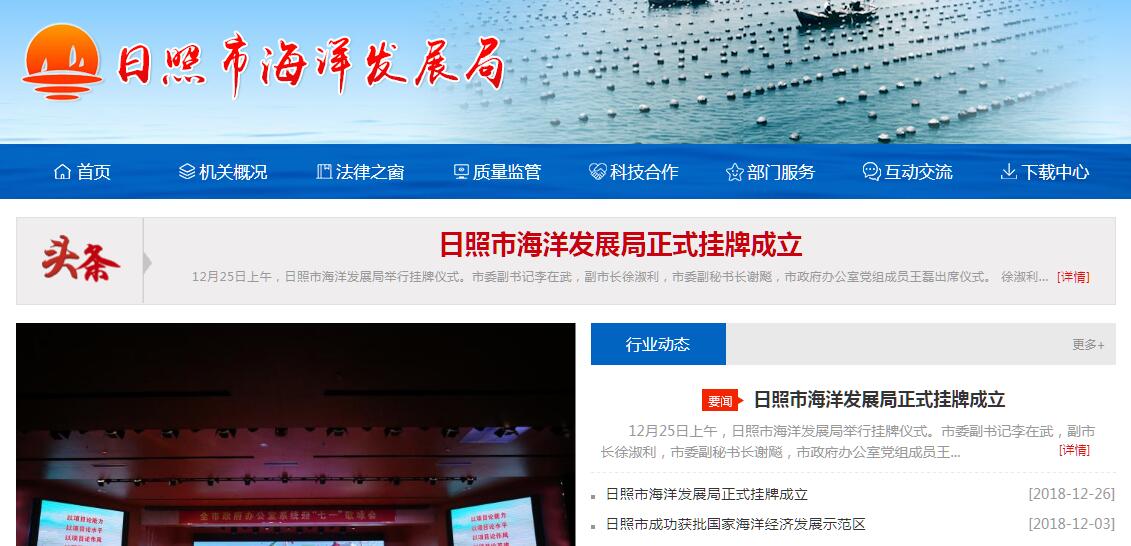 | 网站简介: 日照市海洋发展局,是日照市机构改革组建的新部门,为日照市人民政府工作部门。2018年12月25日,日照市海洋发展局举行挂牌仪式。市委副书记李在武,副市长徐淑利,市委副秘书长谢飚,市政府办公室党组成员王磊出席仪式。新组建的市海洋发展局,主要负责组织拟订海洋发展战略、发展规划、产业政策并组织实施;负责海域使用和海岛保护利用管理;负责海洋经济运行监测评估、海洋科技、海洋对外合作;负责渔业管理和监督管理渔业安全生产;负责渔船检验和监督管理等。 |