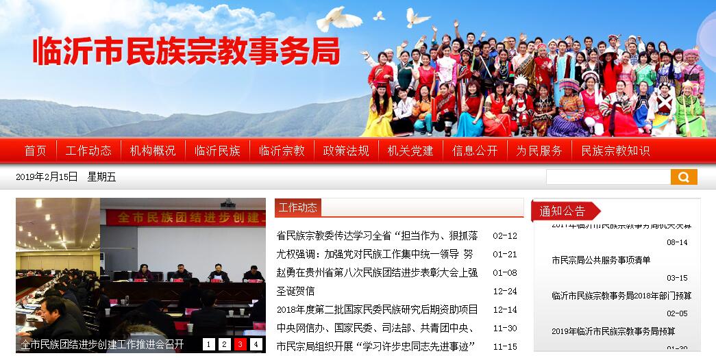 临沂市民族宗教事务局主要职责:(一)贯彻执行民族宗教工作的方针政策和法律法规;拟订全市民族宗教工作的政策措施并组织实施;负责监督检查民族宗教政策和法律法规的执行情况;承担民族宗教方面行政审批(许可)事项和服务事项的事中事后监管职责;组织开展民族宗教理论、政策和民族宗教工作重大问题的调查研究并提出建议;负责开展民族宗教政策和法律法规的宣传教育工作。(二)负责协调推动有关部门履行民族宗教工作相关职责,促进民族宗教政策在经济发展和社会事业有关领域的落实。(三)参与拟订少数民族事业发展规划;提出少数民族经济发展的特殊政策和措施建议,承办少数民族扶贫事宜;参与组织协调对少数民族经济的支援;会同有关部门共同促进少数民族各项社会事业的发展。(四)依法保障少数民族的合法权益,巩固和发展社会主义民族关系;办理涉及少数民族风俗习惯的有关事宜,维护民族团结;配合有关部门处理涉及民族宗教方面的重大事件,维护社会稳定;负责民族团结进步宣传工作;承办有关表彰活动。(五)负责联系少数民族干部和少数民族代表人士,协助有关部门做好少数民族干部的培养、教育和使用工作。(六)依法保护公民宗教信仰自由和正常的宗教活动,维护宗教界的合法权益,促进宗教关系和谐;负责对民间信仰工作的行政监管,牵头协调相关综合事务和重要事项。(七)依法履行管理职能,会同有关部门防范利用宗教进行的非法、违法活动,抵御境外利用宗教进行的渗透活动;参与民族宗教方面反恐怖主义相关工作。(八)指导宗教团体加强自身建设、依法依章开展活动,办理宗教团体需由政府解决或协调的有关事务。(九)联系宗教界代表人士,推动宗教界进行爱国主义、社会主义及拥护祖国统一和民族团结的自我教育,发挥宗教界人士和信教群众在促进经济社会发展中的积极作用;协同有关部门提出宗教界代表人士政治安排意见。(十)负责处理民族宗教工作领域有关涉外事宜,指导民族宗教界开展对外和对港、澳、台地区的友好交往活动,参与涉及民族宗教对外宣传工作。(十一)参与少数民族专项资金的管理和专项贷款项目的论证和推荐;参与宗教工作方面专项资金的管理。(十二)建立和完善少数民族事业发展综合评价监测体系;推进民族宗教事务管理信息化建设。(十三)承办市委、市政府交办的其他事项。