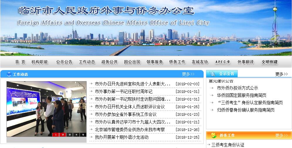 临沂市人民政府外事与侨务办公室主要职责:(一)贯彻执行国家和省关于外事、侨务工作的方针政策和法律法规,拟订全市外事、侨务工作的政策措施和规划并组织实施;贯彻执行外事工作的规章制度和工作规则,归口管理全市执行国家和省对外政策的有关工作,归口管理全市侨务工作,统筹协调重要外事事项及有关部门和社会团体的涉侨工作。(二)围绕全市经济建设和对外开放开展外事、侨务调查研究,为市委、市政府决策提供意见和建议;利用对外交往渠道,为全市经济建设和社会发展服务;向市委、市政府提供外事和侨务信息,向涉侨部门通报侨务工作情况。(三)审核各县区和各部门报请市委、市政府审批的外事文件和涉港澳文件,审核各县区和各部门拟订的直接涉及华侨华人和归侨侨眷的有关政策;承办全市党政机关、企事业单位人员因公临时出国和邀请外国相应人员来访的审核审批工作,按权限办理护照、签证和签证通知函电。(四)贯彻执行国家对港澳工作的方针政策,指导协调与港澳地区的交流与合作;负责因公赴港澳人员的审核审批工作,按权限办理因公往来港澳地区通行证和签注。(五)负责组织接待来我市访问的国宾、党宾和其他重要外宾、华侨华人;按权限办理外国新闻机构和外国记者事务;统筹安排市级领导人的外事、侨务活动。(六)负责检查全市因公出国团组和人员在国外活动情况,定期综合全市因公出国和邀请外国人来访情况,并向市委、市政府和省主管部门报告。(七)管理全市与外国友好城市以及其他结好单位的交往活动,办理对外结好的报批事宜;指导全市民间对外交往工作。(八)牵头协调处理涉外案(事)件及涉外突发事件;协助处理境外领事保护案(事)件;指导有关部门的外国专家管理和出国培训工作;处理或协助有关单位处理涉及外国人管理工作的重要事项。(九)配合有关部门做好对外宣传和群众性外事教育工作。(十)指导归侨侨眷工作,依法组织协调归侨侨眷、华侨华人合法权益维护工作,加强全市为侨公共服务体系建设;承办归侨侨眷身份认定工作;协助有关部门做好华侨华人、归侨侨眷代表人士的人事安排工作;负责华侨回国定居审批工作。(十一)负责指导、开展对华侨华人及其社团的联谊和服务工作;开展港澳地区侨界的联谊工作;按照对台工作的统一部署,通过侨务渠道开展对台工作;开展对华侨华人的宣传、文化交流和华文教育工作。(十二)调查研究引进华侨华人资金、技术、人才工作的情况并提出政策建议,指导、推动涉侨经济、科技合作与交流;协调涉侨经济投诉工作;负责对华侨华人和港澳同胞捐赠财产的使用情况进行监督检查。(十三)负责全市外事、侨务干部和涉外人员对外政策和外事纪律教育工作;负责外事、侨务干部业务培训工作。(十四)配合纪检、监察和保密部门检查外事纪律及保密制度的执行情况,向有关部门提出违反外事纪律问题的处理意见。(十五)承担市委外事工作领导小组的日常工作。(十六)承办市委、市政府和上级主管机关交办的事项。