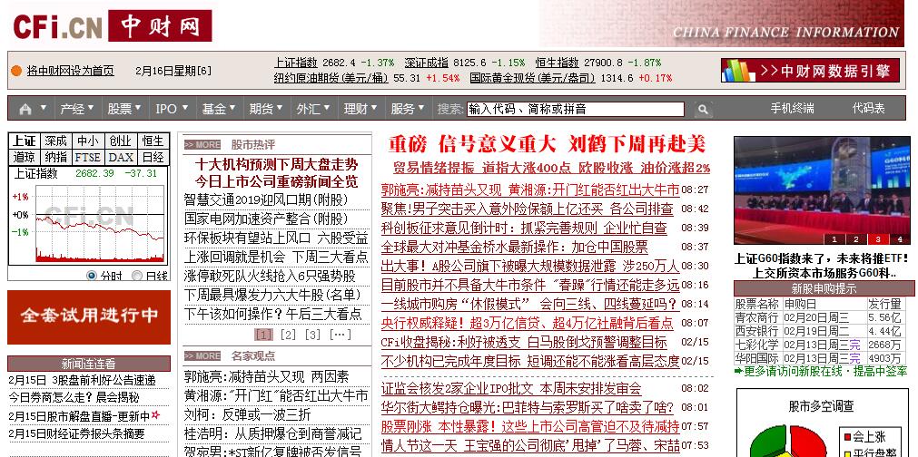 | 网站简介: 中国财经信息网络传媒,CFi.CN,24小时提供全面及时的财经新闻、股票、新股发行、数据、统计图表,财经分析软件等。中国财经信息网由中财信息产业有限公司于1998年创办,中财网以网络为媒介面向全球用户提供全面及时、准确权威的中国财经证券信息服务。中财网建立以来,经过近16年的发展,以信息量庞大,24小时即时更新的优点一举成为当前国内网上访问最大的财经站点之一。中财网凭借敏锐的市场洞察力和网络先进的尖端技术,在国内互联网络的专业服务中占有广阔的市场。中财网的服务方针用户能在第一时间获得最完整与权威的财经与证券市场信息。在金融网络化飞速发展的趋势下,中财网以技术与服务为突破点,结合传统媒体的信息优势,已成为一个大型财经、证券信息发布平台。 |