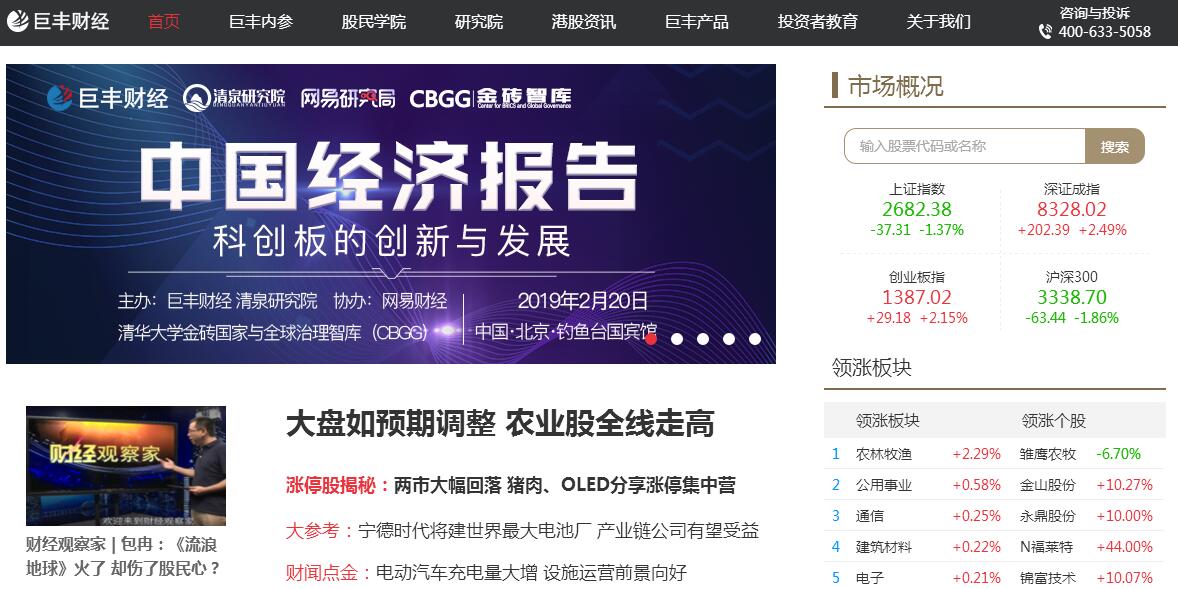 陕西巨丰投资资讯有限责任公司(简称“巨丰投顾”)是值得信赖的投资理财顾问服务提供商,以专注于“技术驱动+专业团队+服务平台”,为客户创造个性化、值得信赖的愉悦投资体验为使命,致力于提供专业投资理财建议,帮助客户实现财富稳健增值。公司成立于1997年,1998年经中国证监会批准成为首批证券投资咨询机构(证券投资咨询资格证编号:ZX0057)。2015年,公司成为北京股权交易中心和陕西股权交易中心新四板推荐机构会员,公司在北京、上海、广州、重庆、福州、无锡六地开设了6家分公司,服务覆盖投资者超过百万。公司历经20年专业证券投资咨询服务经验积累,在“尊重客户、共享共赢”经营理念指引下,培养了大批专业投资顾问人才,围绕“自上而下做投资、稳健图存求明利”的投资理念,坚持对市场做独立判断,通过技术驱动的数据挖掘,对资讯信息做一手加工和原创解读,为投资者做出了专业、用心、理性、负责的决策参考,在业界和投资者当中有着良好的服务口碑,且因专业内容被各大券商、信托、基金机构广泛引用,更被奉为“机构背后的机构”。旗下精心打造的巨丰财经(www.jfinfo.com)、“巨丰投资”微信公众号,已成为拥有数百万用户群体的知名投资顾问服务平台,通过与今日头条、网易财经、新浪财经等自媒体平台,与华融证券、山西证券、九州证券等证券公司、基金、信托、银行等金融机构的深入合作,已拓展成为帮助投资者选择恰当投资理财产品,实现便捷、实用互联网金融服务增值的典范。为迎接经济全球化挑战,巨丰投顾将坚持“用心创造价值”的核心理念,以全球视野帮助投资者进行资产的全球配置,实现财富稳健增值,真正成为中国投资顾问及投资领域的翘楚。