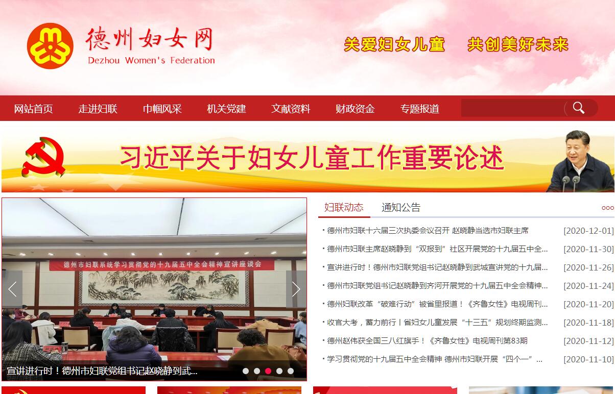 德州市妇女联合会(以下简称妇联)成立于1950年,它是德州各界妇女在中国共产党领导下为争取进一步解放而联合起来的社会群众团体,是党和政府联系妇女群众的桥梁和纽带,是国家政权的重要社会支柱。市妇联的基本职能是代表和维护妇女权益,促进男女平等。随着时代发展,德州妇联在市委、市政府和上级妇联的领导和指导下,各级妇女组织坚持以邓小平理论和"三个代表" 重要思想为指导,认真贯彻和全面落实科学发展观,围绕我市构建和谐社会的大局,坚持"一手抓发展,一手抓维权"的工作方针,在"党政所急、妇女所需、妇联所能"的结合点上找准工作定位,团结带领全市妇女发扬"四自"精神,开展“双学双比”、“巾帼建功”、“家庭文明建设”、“双合格”四大主体活动。具体工作有:实施“巾帼科技致富工程”,培训农村妇女科技素质,帮助农村妇女增收致富;实施“巾帼社区服务工程”,创办巾帼创业服务中心,承担“阳光工程”劳动力培训转移任务,促进城乡妇女创业、就业;深化“巾帼文明岗”创建活动,组织引导城镇女职工岗位建功;以基层“巾帼文明队”建设为抓手,以家庭为切入点,开展家庭文明建设活动,以家庭文明推动社会文明,以家庭和谐推动社会和谐;开展平安家庭创建活动,维护妇女合法权益;实施“春蕾计划”;促进马克思主义妇女观和男女平等基本国策的深入贯彻落实,推动"两纲"、"两法"的贯彻实施,改善妇女儿童生存发展环境,为推动德州经济发展和社会全面进步做出了应有的贡献。