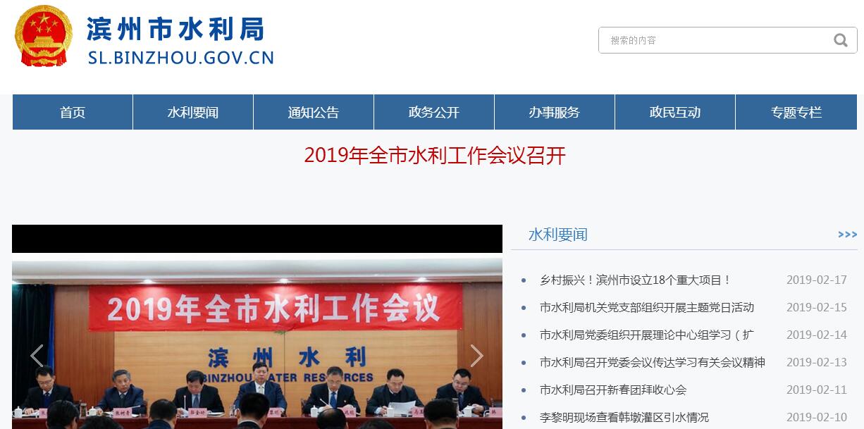 滨州市水利局主要职责:(一)贯彻执行国家和省有关水利工作的方针、政策和法律、法规;组织拟订全市水利民展战略、中长期规划和年度计划;组织起草全市水利工作的规范性文件并监督实施。(二〕统一管理水资源(空中水、地表水、地下水)。组织拟定全市和跨县(区)水长期供求计划、水量分配方案并监督实施;组织有关国民经济总体规划、城市规划及重点建设项目的水资源和防洪的论证工作;组织实施取水许可制度和水资源费征收制度;发布全市水资源、水质监测公报。(三)拟定节约用水政策,编制节约用水规划,制定有关标准,组织、指导和监督节约用水工作。(四)按照国家资源与环境保护的有关法律法规和标准,拟定全市水资源保护规划;组织水功能区的划分和向饮水区等水域排污的控制;监测地表水和地下水的水量、水质,审定水域纳污能力;提出限制排污总量的意见;向十域排污新建和扩建排污口应事先征得水行政主管部门的同意。(五)组织指导水政监察和水行政执法;协调并仲裁部门间和各县(区)间的水事纠纷;受币政府委托协调处理市际间的水事纠纷。(六)拟定水利行业对经济调节措施;对水利资金的使用进行宏观调节;指导水利行业的供水及多种经营工作;研究提出有关水利的价格、税收、信贷、财务等经济调节意见,监督管理水利国有资产的保值增值。(七)对全了水利工程建设进行行业管理,负责编制、审查了内大中型水利基建项目建议书和可行性报告;组织水利科学研究和技术推广;组织拟定水利行业技术质量标准,监督实施水利工程的规程、规范;负责水利工程招标投标活动的行政监督。(八)组织指导水利设施、水域、河道及其岸线的管理与保护;组织指导较大河、湖、库、闸及河口滩涂、海堤的治理和开发;组织建设和管理具有控制性或跨县区的重要水利工程;组织指导水库大坝的安全监管。(九)指导农村水利工作;组织协调农田水利基本建设、人畜饮水、节水灌溉和乡镇供水工作。(十)负责水利方面的科技、教育、技术推广工作和对外经济技术合作与交流;指导全市水利队伍建设。规划并监督实施,组织水土流失的监测和综合防治。(十一)组织指导全市水土保持工作;研究制定水土保持计划、规划并监督实施,组织水土流失的监测和综合防治。(十二)负责市水资源管理委员会和市水土保持委员会的日常工作。(十三)承担市政府防汛抗旱指挥部的日常工作,组织、协调。监督、指导全市防汛抗旱工作,对较大河、湖、库、闸和重要水利工程设施实施防汛抗旱调度。(十四)负责本部门及所属单位的安全管理工作。(十五)承办市委、市政府交办的其他事项。