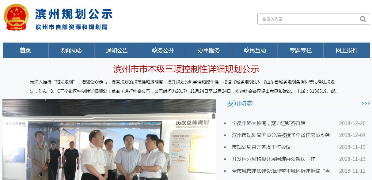 | 网站简介: 滨州市规划局主要职责:1、负责组织实施城乡规划有关法规政策。2、负责城乡规划编制的有关工作。3、承担规划区内城乡规划实施管理的责任。4、负责城乡规划的监督检查。5、负责城乡规划编制单位资质管理的有关工作。 |