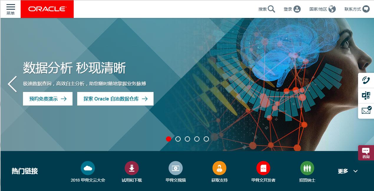 | 网站简介: 甲骨文公司,全称甲骨文股份有限公司(甲骨文软件系统有限公司),是全球最大的企业级软件公司,总部位于美国加利福尼亚州的红木滩。1989年正式进入中国市场。2013年,甲骨文已超越 IBM ,成为继 Microsoft 后全球第二大软件公司。Oracle为全球 175 个国家/地区的 43 万客户提供软件即服务、平台即服务、基础设施即服务和数据即服务的先进功能,了解有关 Oracle 的更多资讯。2018年12月,世界品牌实验室编制的《2018世界品牌500强》揭晓,甲骨文公司排名第31。 |
