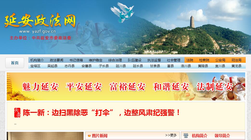 延安政法网由中共延安市委政法委员会主办。根据市委、市政府《关于市级机构改革的实施方案》(延市发[2001]31号),市委政法委员会是市委领导政法的工作部门。市社会治安综合治理委员会办公室是市社会治安综合治理委员会的办事机构,与市委政法委员会合署办公。一、市委政法委员会主要职能:(一)根据党中央的路线、方针、政策和市委的部署,对一定时期内的政法工作作出全局性部署,并督促贯彻落实。(二)组织协调指导维护社会稳定的工作。(三)检查政法部门执行法律法规和党的方针政策的情况,研究制定落实党的方针政策、严肃执法的具体措施。(四)监督政法各部门依法行使职权,指导和协调政法各部门在依法相互制约的同时密切配合,督促、推动大案要案的查处工作,研究、协调有争议的重大疑难案件。(五)组织、协调社会治安综合治理工作,推动各项措施的落实。(六)组织推动政法战线的调查研究工作,总结新经验,解决新问题,探索政法工作改革,通过改革进一步加强政法工作。(七)研究加强政法队伍建设和领导班子建设的措施,协助组织部门考察、管理政法部门的领导干部。(八)指导下级政法委员会的工作。(九)办理市委和省委政法委员会交办的其他任务。二、延安市社会治安综合治理委员会办公室主要职能:(一)围绕各个时期综合治理的中心工作和重大部署,针对出现的新情况、新问题进行调查研究,并提出对策。(二)按照上级部署并结合实际情况,制订工作规划和实施方案,向市综治委提出工作意见。(三)根据市委、市政府和市社会治安综合治理委员会的部署和要求,对社会治安综合治理工作进行指导和督促检查,组织协调各县区、各部门、各单位狠抓社会治安综合治理各项措施的落实。(四)落实社会治安综合治理目标责任制、领导责任制和“一票否决权”制,负责考评奖惩,表彰命名等工作,总结推广经验,推动社会治安综合治理工作深入开展。(五)收集、传递综合治理工作信息。(六)负责协调、联系综合治理委员会成员单位的工作;指导、协调县区社会治安综合治理机构的工作。(七)处理其他有关社会治安综合治理工作。